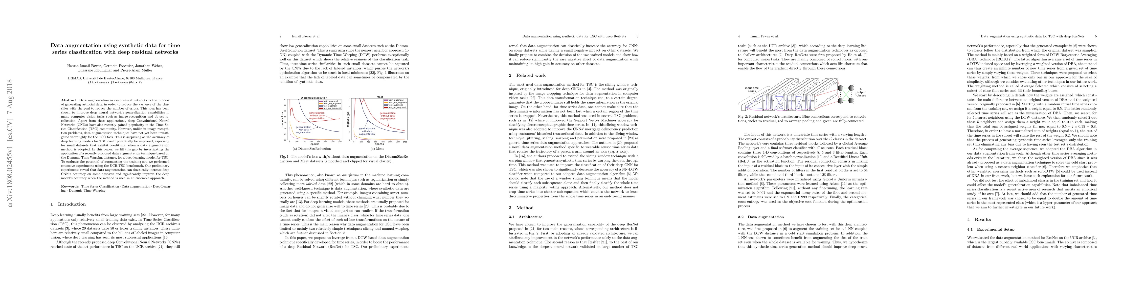 This paper explores the use of synthetic data augmentation via Dynamic Time Warping for enhancing time series classification using deep residual networks. Experiments on UCR datasets show significant improvements in classification accuracy, especially when used in ensemble methods.