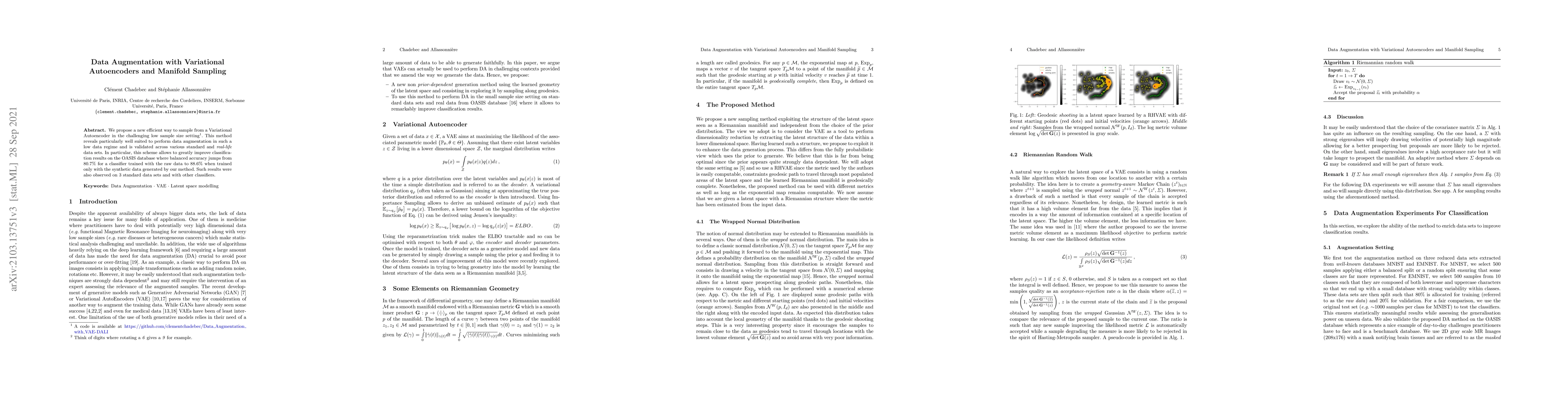 A new method using Variational Autoencoders and manifold sampling improves classification results on various datasets, especially in low-sample-size settings, with a 8.9% increase in accuracy compared to raw data.