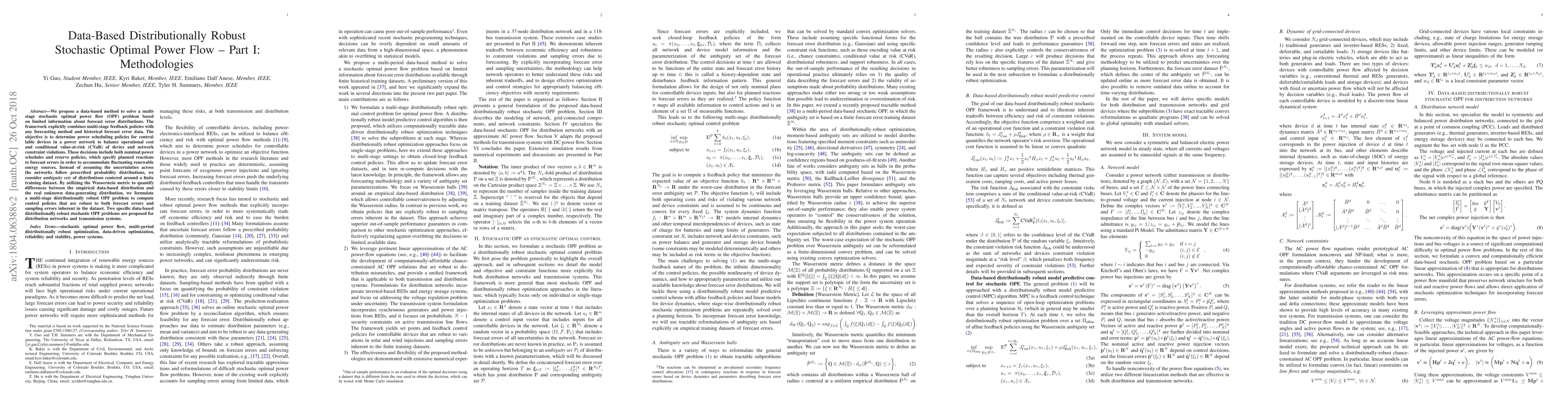 This paper introduces a data-based method for solving multi-stage stochastic optimal power flow problems using limited forecast error distribution information. It combines multi-stage feedback policies with historical data and formulates a distributionally robust optimization problem using the Wasserstein metric to ensure robustness against forecast and sampling errors.