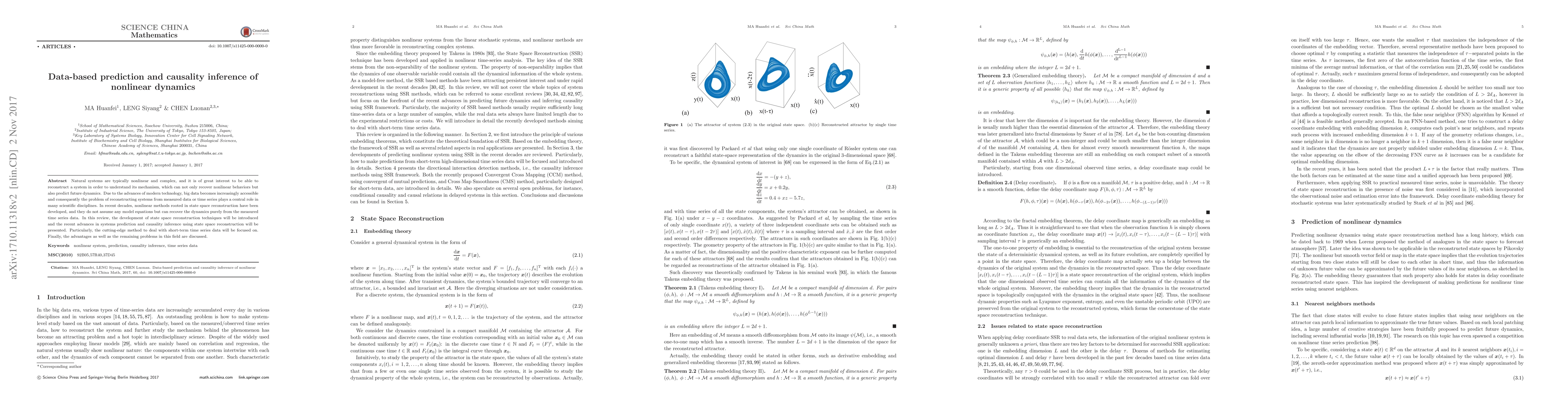 This review introduces recent advances in using state space reconstruction techniques to predict nonlinear dynamics from measured time series data, with a focus on short-term time series data. The methods can recover the system's mechanism and predict future dynamics without assuming any model equations.