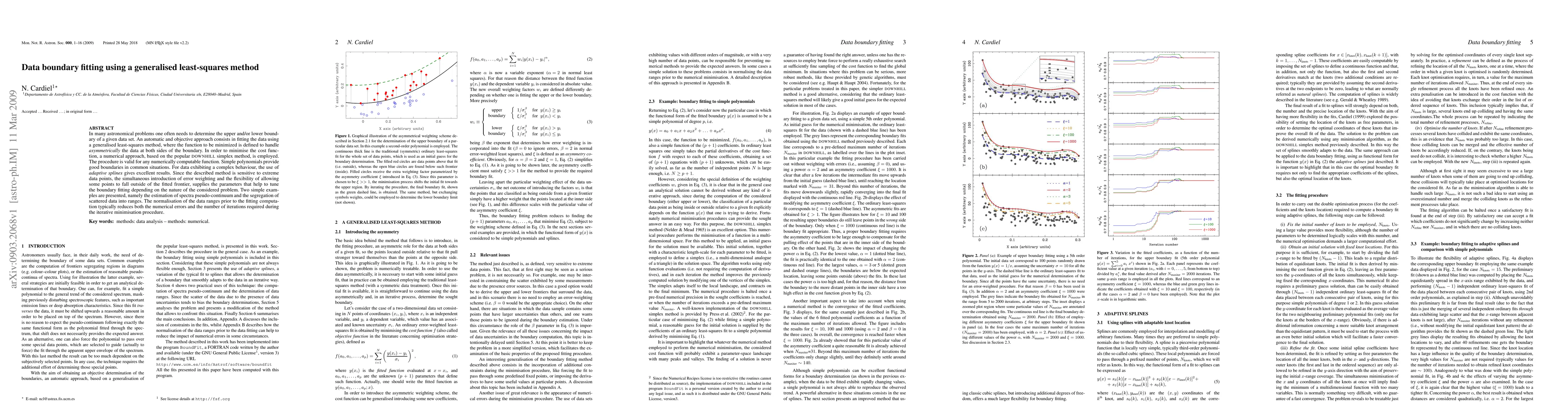 This paper proposes a generalised least-squares method for fitting data boundaries, employing numerical optimisation to handle asymmetrical data. The method uses adaptive splines for complex data and includes error weighting to manage extreme points, demonstrated through examples of spectra pseudo-continuum estimation and scattered data segregation.