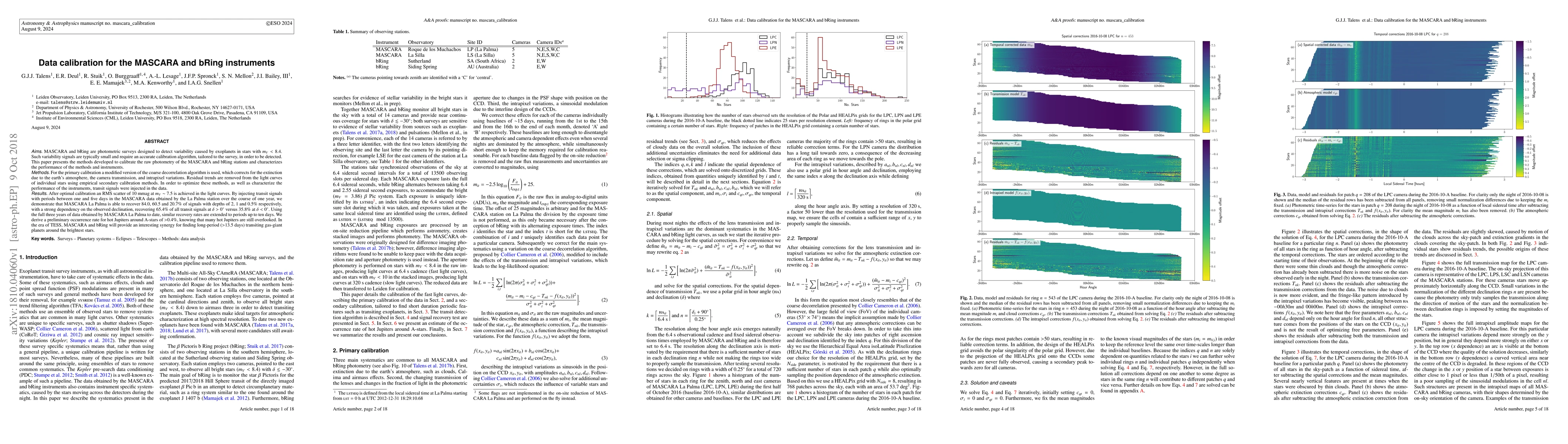 Aims: MASCARA and bRing are photometric surveys designed to detect variability caused by exoplanets in stars with $m_V < 8.4$. Such variability signals are typically small and require an accurate calibration algorithm, tailored to the survey, in order to be detected. This paper presents the methods developed to calibrate the raw photometry of the MASCARA and bRing stations and characterizes the performance of the methods and instruments. Methods: For the primary calibration a modified version of the coarse decorrelation algorithm is used, which corrects for the extinction due to the earth's atmosphere, the camera transmission, and intrapixel variations. Residual trends are removed from the light curves of individual stars using empirical secondary calibration methods. In order to optimize these methods, as well as characterize the performance of the instruments, transit signals were injected in the data. Results: After optimal calibration an RMS scatter of 10 mmag at $m_V \sim 7.5$ is achieved in the light curves. By injecting transit signals with periods between one and five days in the MASCARA data obtained by the La Palma station over the course of one year, we demonstrate that MASCARA La Palma is able to recover 84.0, 60.5 and 20.7% of signals with depths of 2, 1 and 0.5% respectively, with a strong dependency on the observed declination, recovering 65.4% of all transit signals at $\delta > 0^\circ$ versus 35.8% at $\delta < 0^\circ$. Using the full three years of data obtained by MASCARA La Palma to date, similar recovery rates are extended to periods up to ten days. We derive a preliminary occurrence rate for hot Jupiters around A-stars of ${>} 0.4 \%$, knowing that many hot Jupiters are still overlooked. In the era of TESS, MASCARA and bRing will provide an interesting synergy for finding long-period (${>} 13.5$ days) transiting gas-giant planets around the brightest stars.