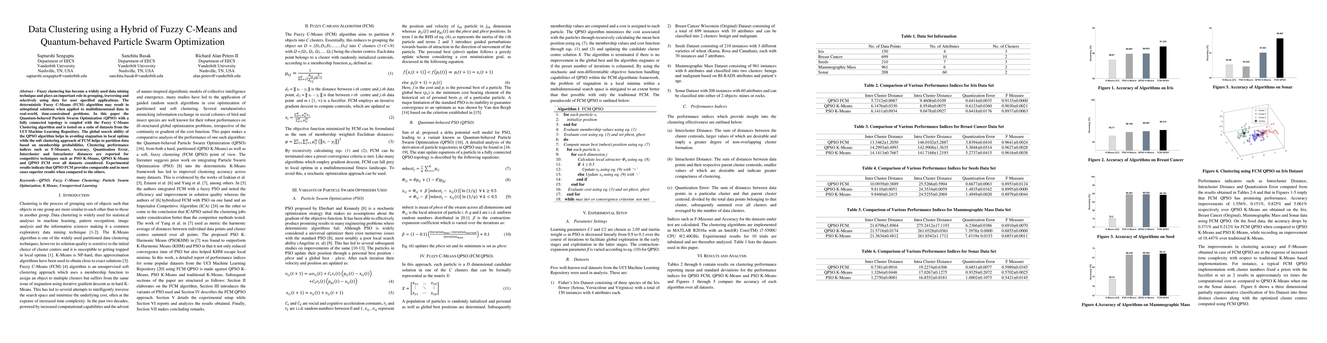This paper proposes a hybrid approach combining Fuzzy C-Means clustering with Quantum-behaved Particle Swarm Optimization to improve clustering performance. The QPSO algorithm enhances the global search capability, while FCM's soft clustering aids in data partitioning based on membership probabilities, leading to superior results compared to other techniques.