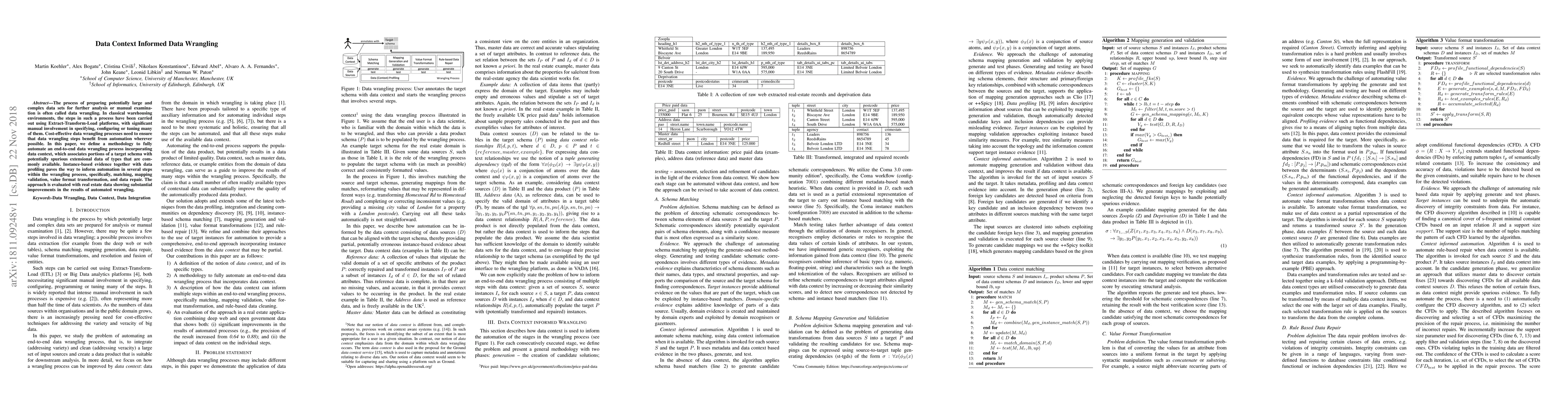 This paper proposes a methodology to automate end-to-end data wrangling, leveraging data context and instance-based evidence to enhance automation in tasks like matching, mapping, and data repair. The approach is demonstrated to significantly improve automated wrangling results using real estate data.