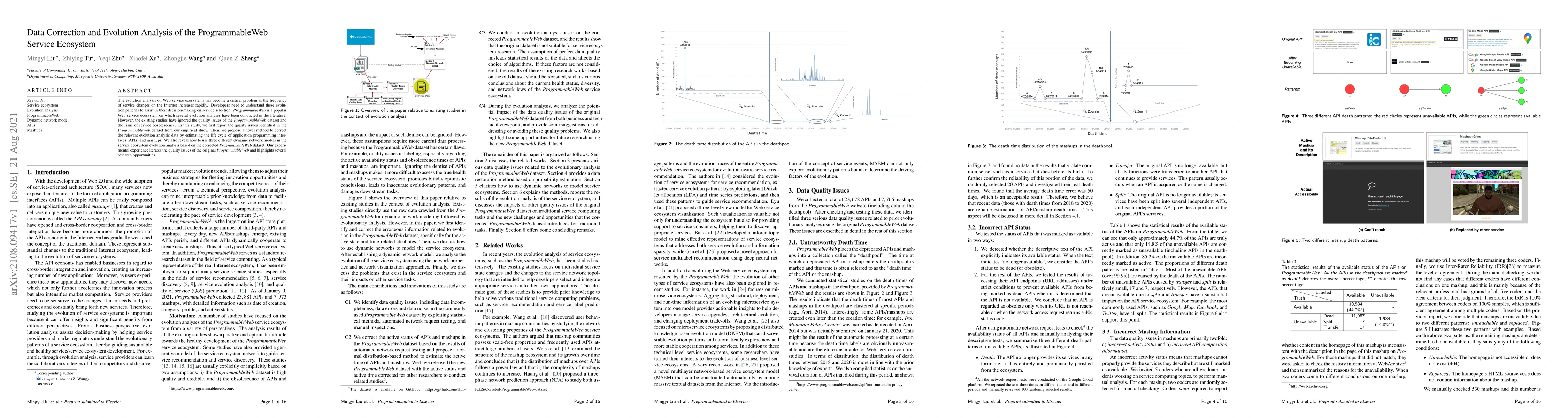 This paper identifies quality issues in the ProgrammableWeb dataset and proposes a method to correct the data by estimating API and mashup life cycles. It also demonstrates the application of three dynamic network models for improved evolution analysis of the Web service ecosystem.