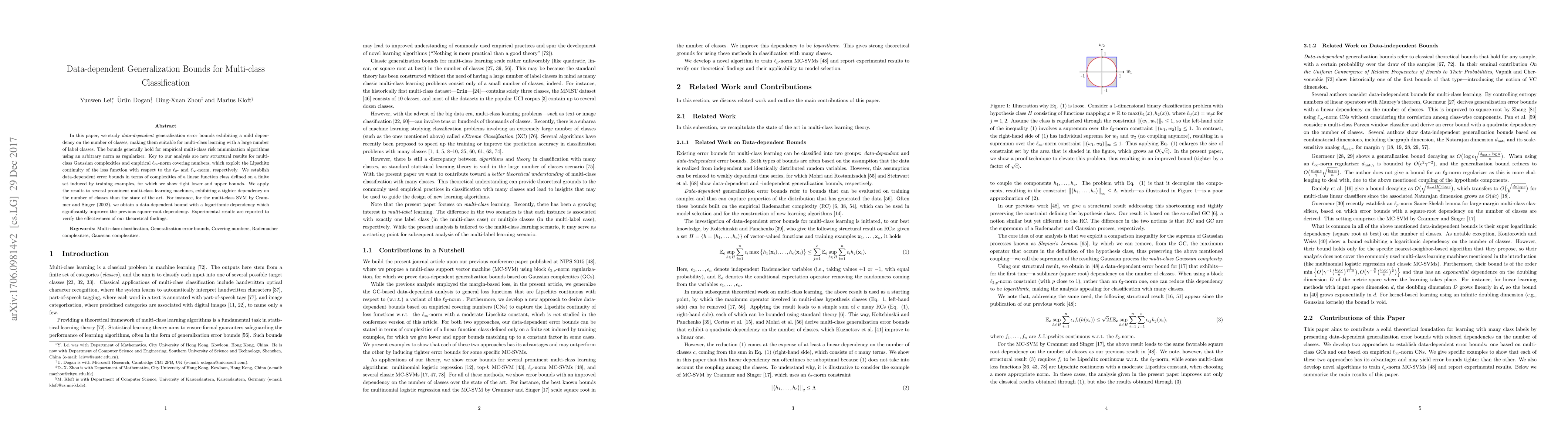 This paper develops data-dependent generalization bounds for multi-class classification with a mild dependency on the number of classes, improving upon previous state-of-the-art bounds. The analysis leverages new structural results for multi-class Gaussian complexities and empirical covering numbers, leading to tighter bounds for algorithms like multi-class SVM.