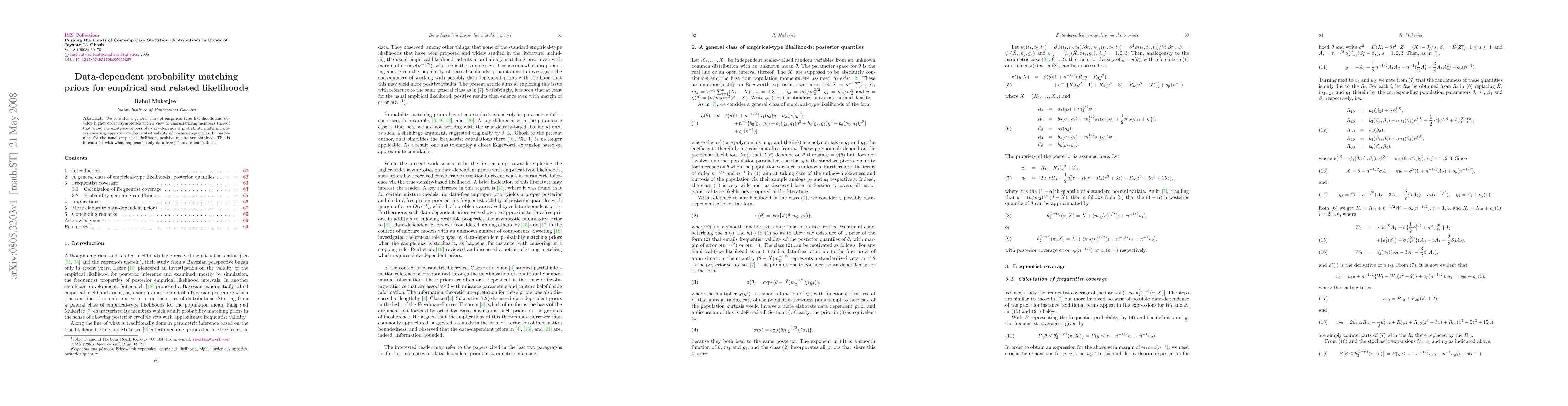 This paper develops higher-order asymptotics for empirical-type likelihoods and identifies data-dependent probability matching priors that ensure the approximate frequentist validity of posterior quantiles, achieving positive results for the usual empirical likelihood unlike data-free priors.
