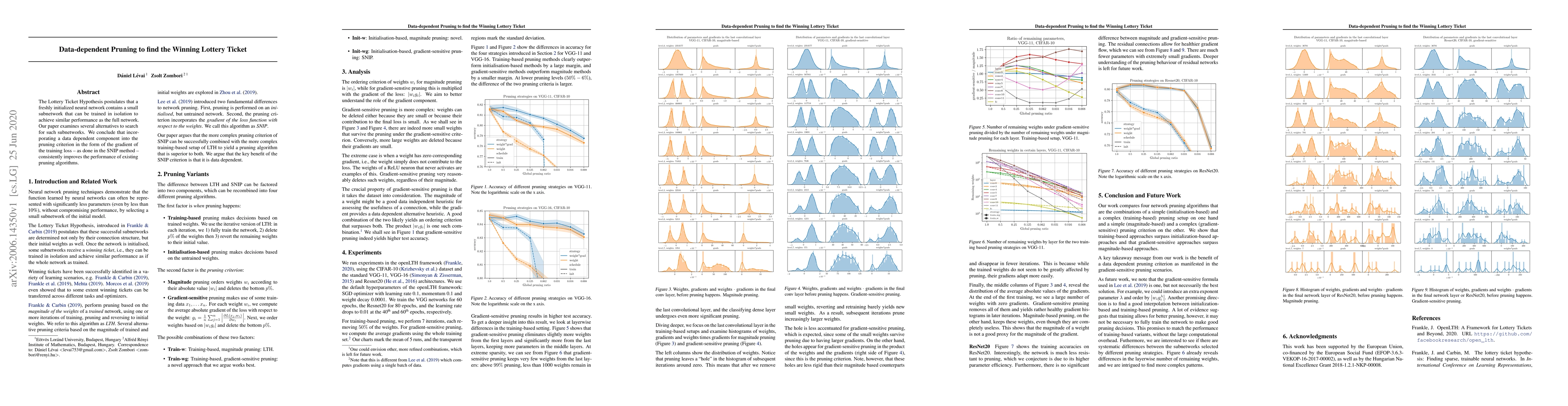 The Lottery Ticket Hypothesis postulates that a freshly initialized neural network contains a small subnetwork that can be trained in isolation to achieve similar performance as the full network. Our paper examines several alternatives to search for such subnetworks. We conclude that incorporating a data dependent component into the pruning criterion in the form of the gradient of the training loss -- as done in the SNIP method -- consistently improves the performance of existing pruning algorithms.