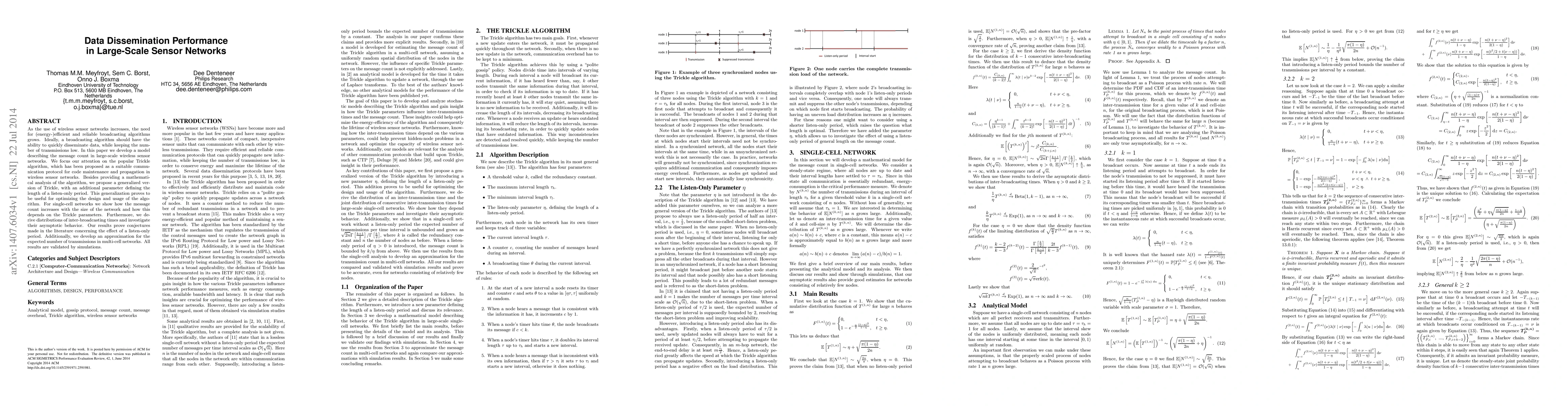 This paper develops a model for analyzing the message count in large-scale wireless sensor networks, focusing on the Trickle algorithm for efficient data dissemination. It proposes a generalized version of Trickle with a listen-only period, optimizing its performance, and validates results through simulations.