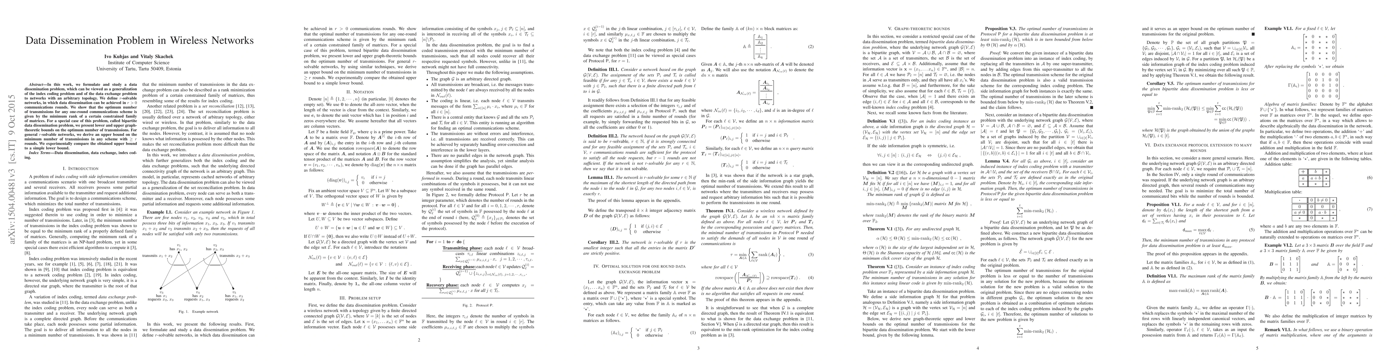 This paper formulates a data dissemination problem in wireless networks, generalizing index coding and data exchange problems. It defines $r$-solvable networks and provides bounds on the minimum number of transmissions, with a focus on both one-round and multi-round communication schemes.