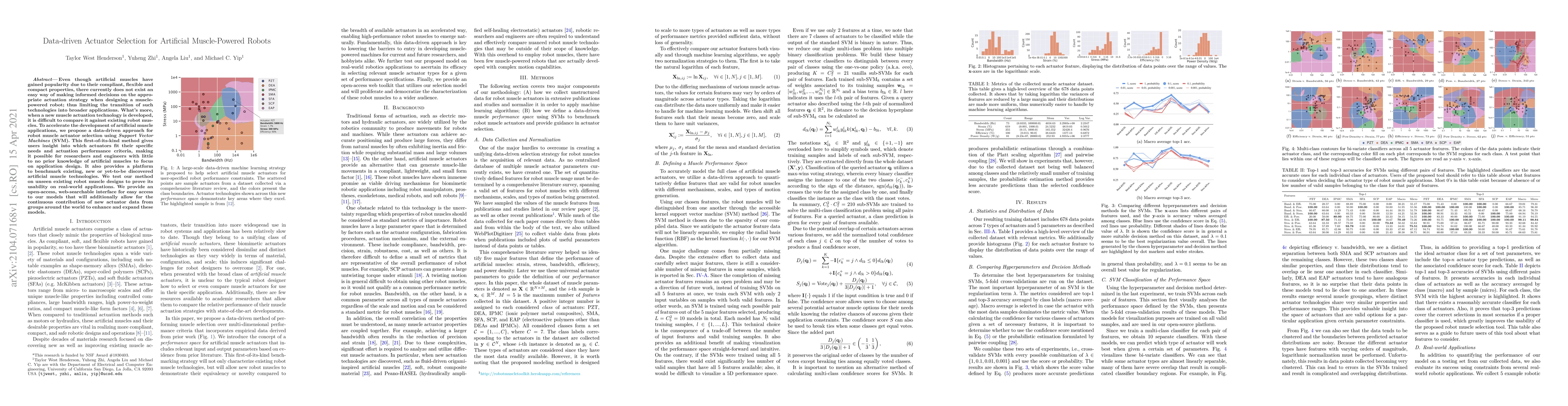 A new data-driven approach using Support Vector Machines helps researchers and engineers choose the best actuator for their artificial muscle-powered robots, accelerating development of this technology. This method provides a platform to benchmark existing technologies and allows users to contribute new data.