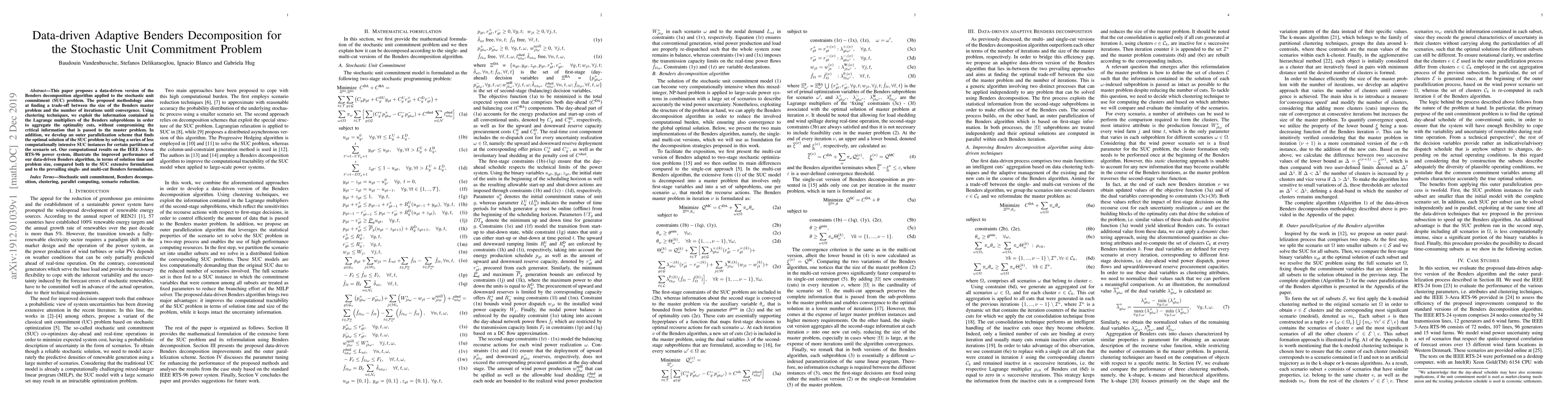 This paper introduces a data-driven adaptive Benders decomposition method for solving the stochastic unit commitment problem, aiming to balance master problem size and iteration count. The approach leverages clustering and parallelization to enhance performance and reduce computational demands.