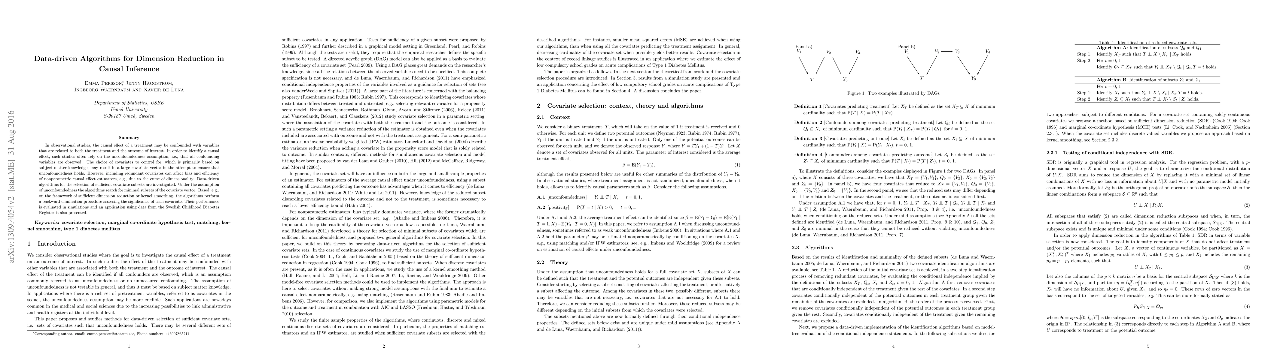 Researchers explored data-driven algorithms to select minimal covariate subsets for causal inference studies, aiming to reduce bias and improve efficiency. Their approach, using methods like sufficient dimension reduction or kernel smoothing, was tested in simulations and a real-world application.
