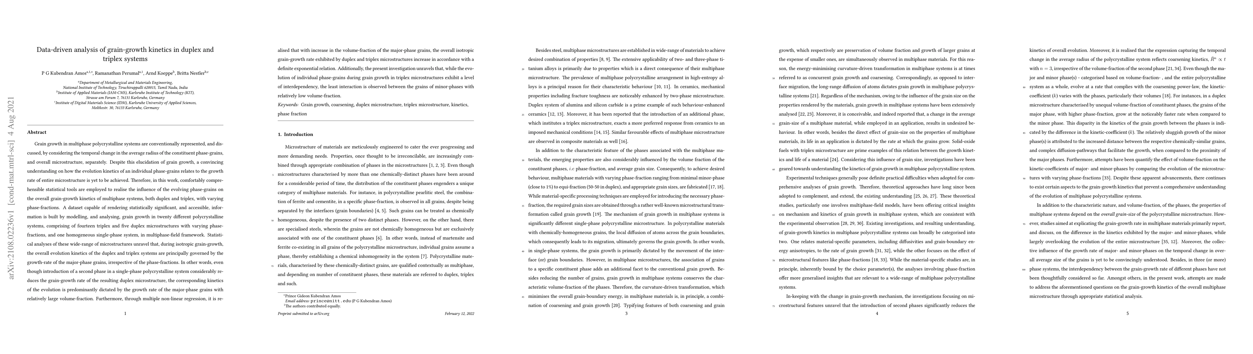 This research uses statistical tools to analyze grain-growth kinetics in duplex and triplex multiphase systems, revealing that the overall growth rate is mainly influenced by the major-phase grains. Results indicate an exponential relationship between the volume-fraction of the major phase and the overall grain-growth rate, with minor phases showing minimal interaction.