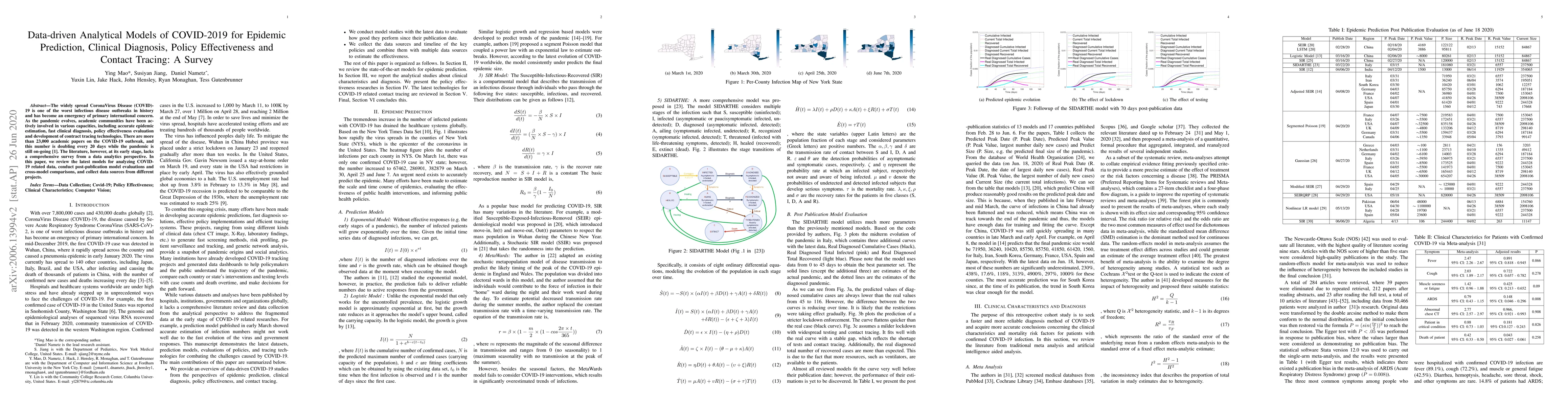 The widely spread CoronaVirus Disease (COVID)-19 is one of the worst infectious disease outbreaks in history and has become an emergency of primary international concern. As the pandemic evolves, academic communities have been actively involved in various capacities, including accurate epidemic estimation, fast clinical diagnosis, policy effectiveness evaluation and development of contract tracing technologies. There are more than 23,000 academic papers on the COVID-19 outbreak, and this number is doubling every 20 days while the pandemic is still on-going [1]. The literature, however, at its early stage, lacks a comprehensive survey from a data analytics perspective. In this paper, we review the latest models for analyzing COVID19 related data, conduct post-publication model evaluations and cross-model comparisons, and collect data sources from different projects.