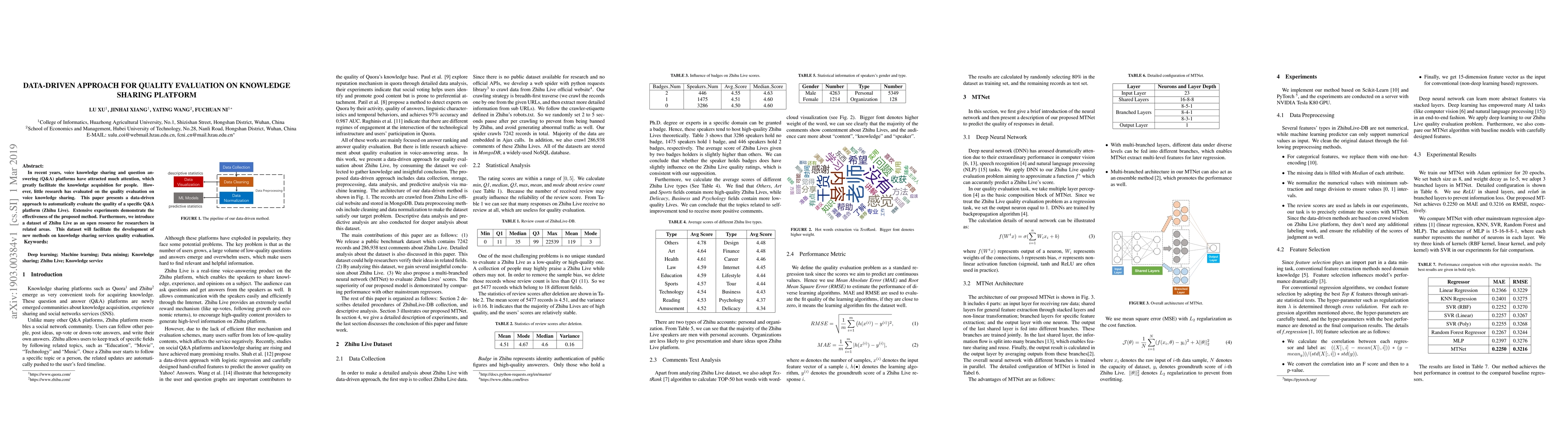 This paper proposes a data-driven approach to automatically evaluate the quality of voice knowledge sharing on the Zhihu Live Q&A platform. Extensive experiments show the method's effectiveness, and a new dataset from Zhihu Live is introduced to support further research in this area.