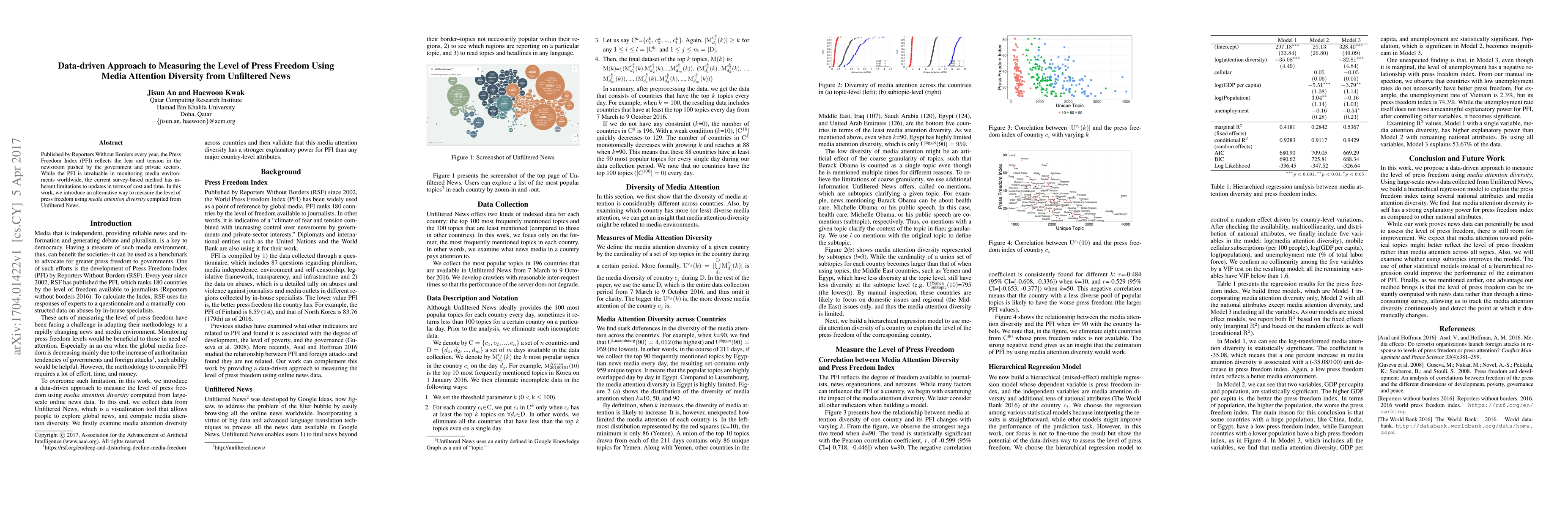 Published by Reporters Without Borders every year, the Press Freedom Index (PFI) reflects the fear and tension in the newsroom pushed by the government and private sectors. While the PFI is invaluable in monitoring media environments worldwide, the current survey-based method has inherent limitations to updates in terms of cost and time. In this work, we introduce an alternative way to measure the level of press freedom using media attention diversity compiled from Unfiltered News.