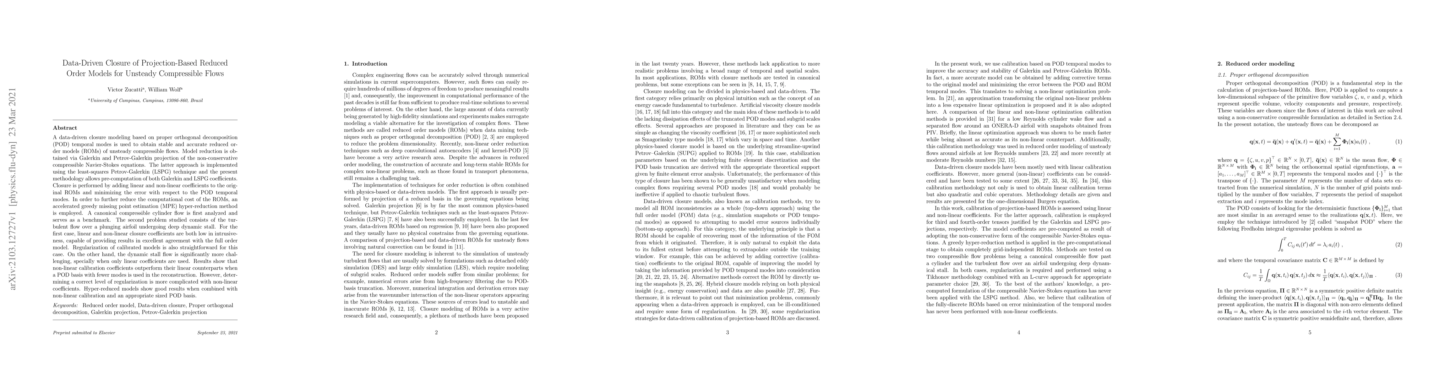 This paper presents a method for creating accurate reduced order models of unsteady compressible flows using data-driven closure modeling and proper orthogonal decomposition, achieving good agreement with full-order models in some cases.