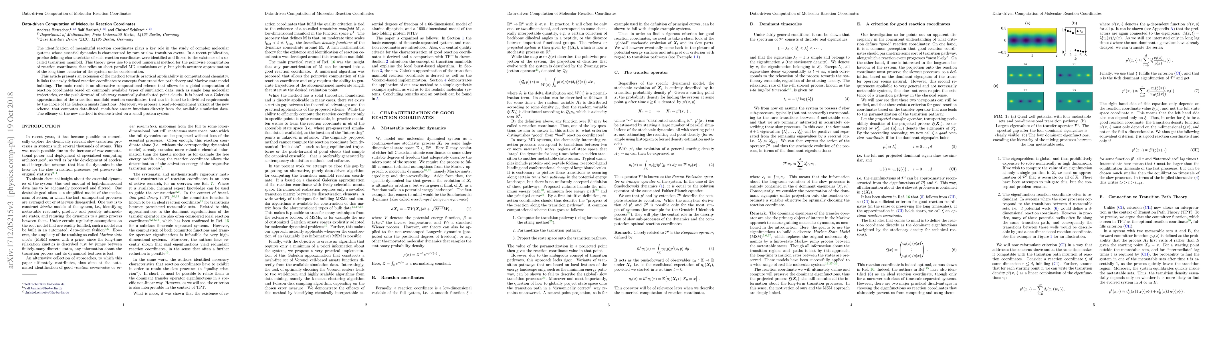 This paper introduces a novel computational method for determining molecular reaction coordinates using data-driven techniques and short parallel MD simulations, extending the method for practical use in computational chemistry and demonstrating its efficacy on a small protein system. The method employs a Galerkin approximation and can be tuned with mesh-free ansatz functions derived directly from simulation data.