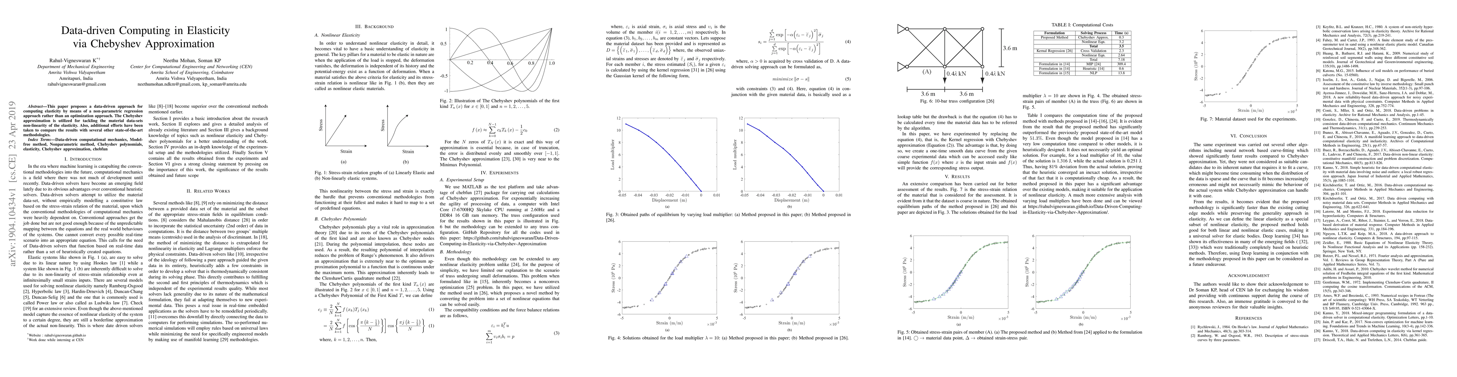 This paper introduces a data-driven method for computing elasticity using non-parametric regression and Chebyshev approximation to handle material data non-linearity, and compares its results with other advanced techniques.