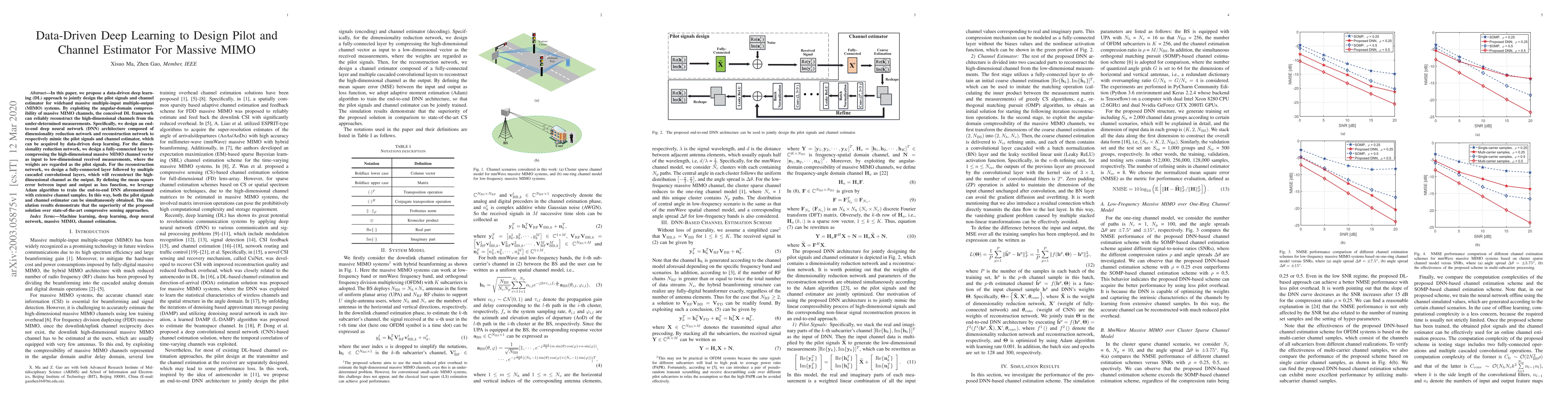 This paper proposes a data-driven deep learning approach to design pilot signals and a channel estimator for wideband massive MIMO systems, leveraging an end-to-end deep neural network to reconstruct high-dimensional channels from under-determined measurements. The method outperforms state-of-the-art compressive sensing techniques.