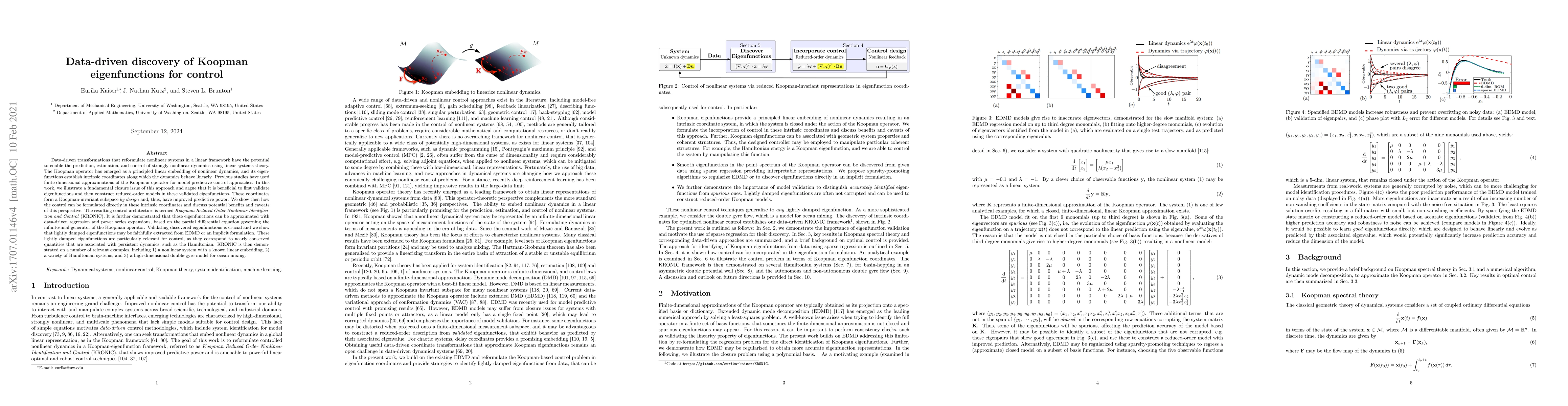 This paper proposes a method called Koopman Reduced Order Nonlinear Identification and Control (KRONIC) to predict and control nonlinear dynamics using linear systems theory. It highlights the importance of validating Koopman eigenfunctions before constructing reduced-order models, which enhances predictive power and enables direct control formulation in intrinsic coordinates. The method is demonstrated on various systems, showing the benefits of data-driven discovery of these eigenfunctions.