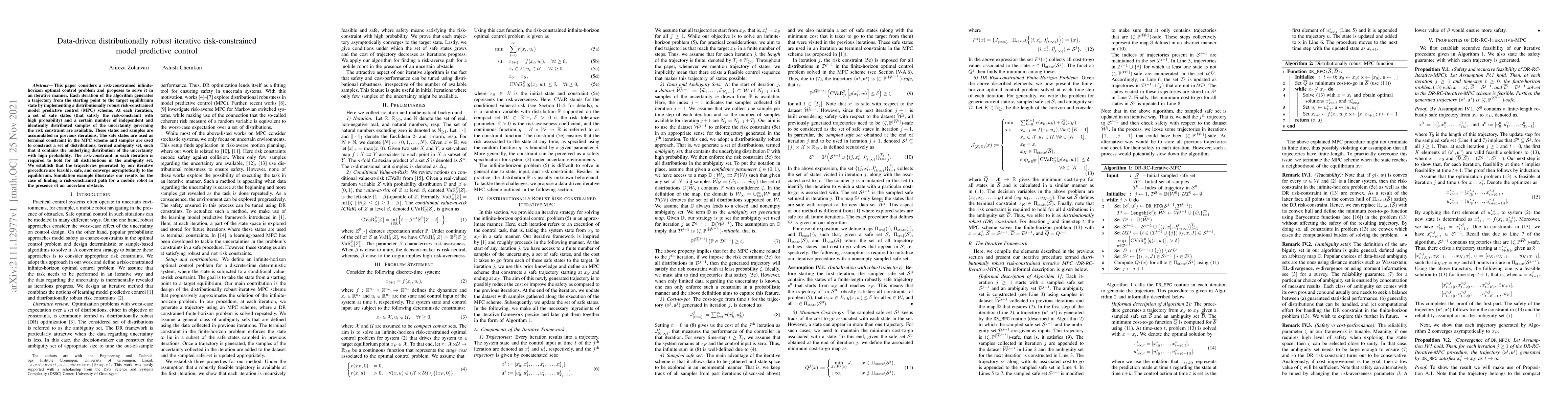 This paper considers a risk-constrained infinite-horizon optimal control problem and proposes to solve it in an iterative manner. Each iteration of the algorithm generates a trajectory from the starting point to the target equilibrium state by implementing a distributionally robust risk-constrained model predictive control (MPC) scheme. At each iteration, a set of safe states (that satisfy the risk-constraint with high probability) and a certain number of independent and identically distributed samples of the uncertainty governing the risk constraint are available. These states and samples are accumulated in previous iterations. The safe states are used as terminal constraint in the MPC scheme and samples are used to construct a set of distributions, termed ambiguity set, such that it contains the underlying distribution of the uncertainty with high probability. The risk-constraint in each iteration is required to hold for all distributions in the ambiguity set. We establish that the trajectories generated by our iterative procedure are feasible, safe, and converge asymptotically to the equilibrium. Simulation example illustrates our results for the case of finding a risk-constrained path for a mobile robot in the presence of an uncertain obstacle.