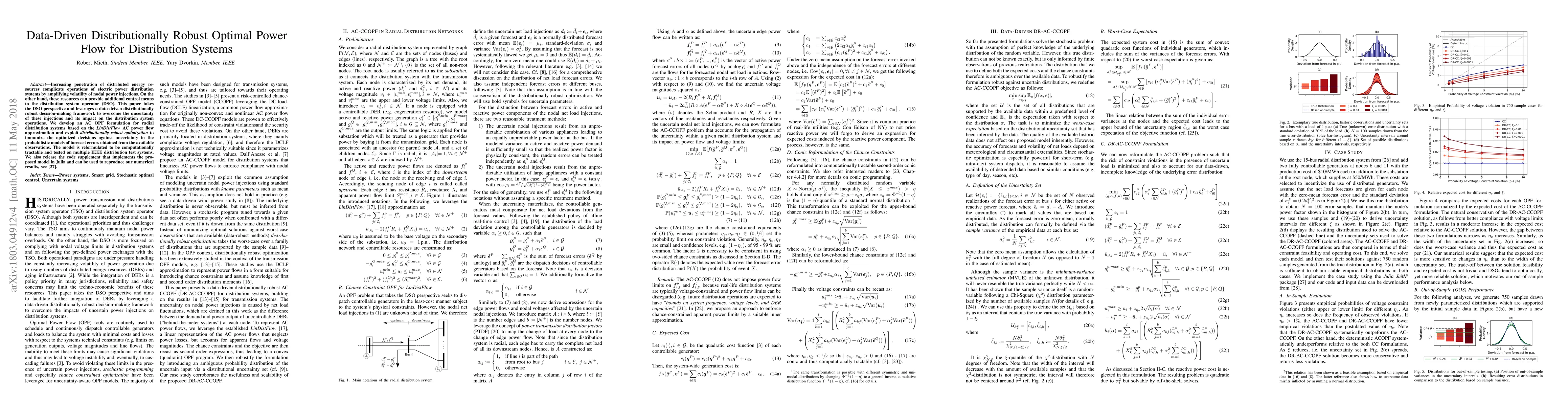 This paper proposes a data-driven approach to optimize power flow in distribution systems, using distributionally robust optimization to mitigate the impact of uncertain distributed energy resources. It provides a computationally tractable model for radial distribution systems and releases an open-source implementation.