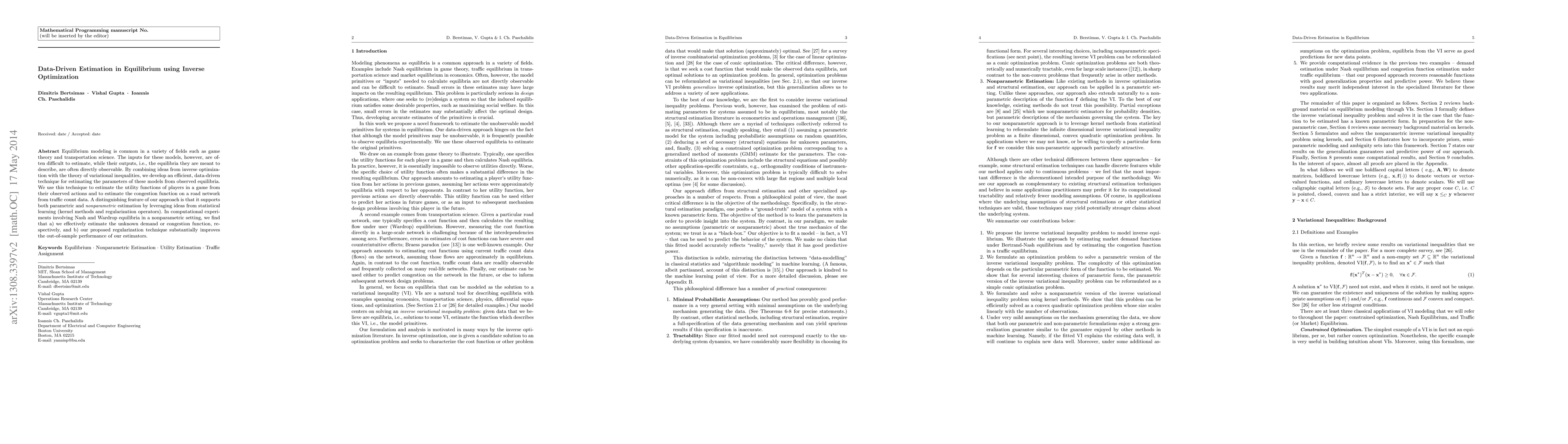 Researchers develop a data-driven technique to estimate model parameters from observed equilibria in fields like game theory and transportation science, improving out-of-sample performance with nonparametric estimation.
