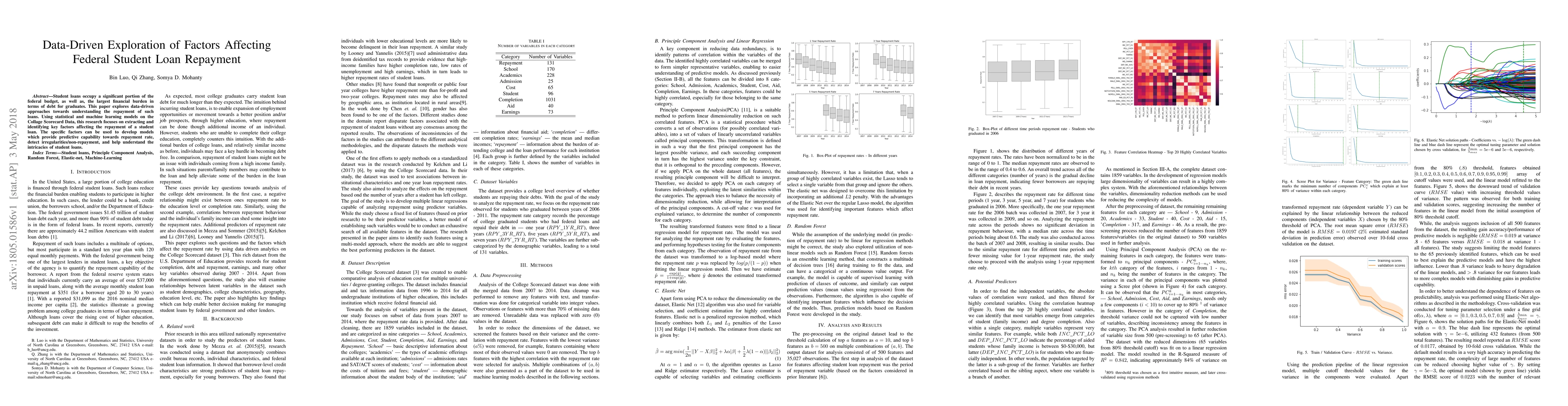 This paper employs statistical and machine learning models on the College Scorecard Data to identify key factors influencing federal student loan repayment. The findings aim to develop predictive models for repayment rates, detect non-repayment, and enhance the understanding of student loan dynamics.