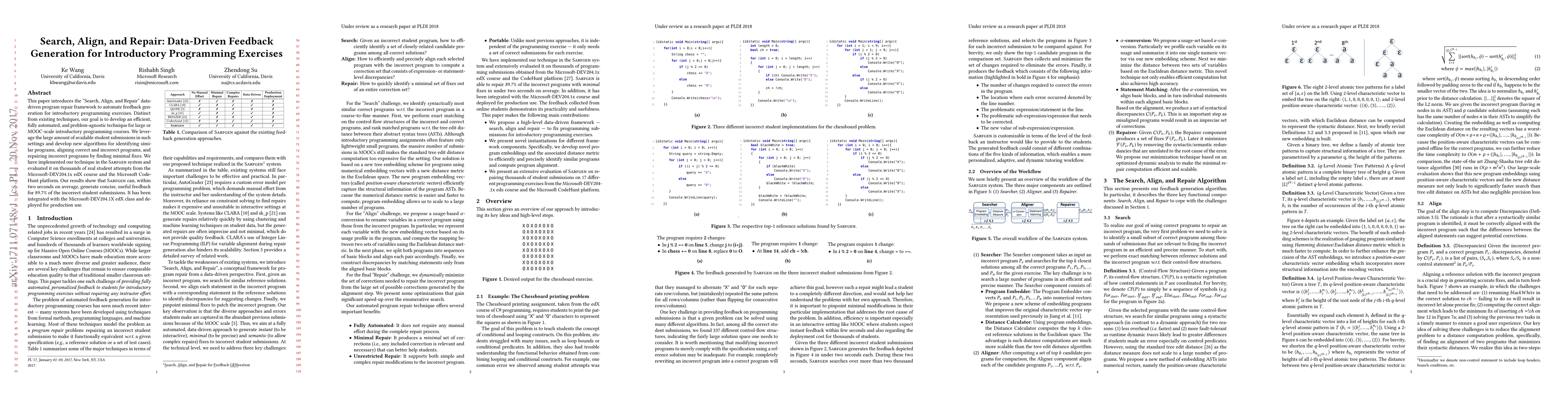 This paper presents the SARFGEN framework for automated feedback in introductory programming, achieving efficient, problem-agnostic repair of student submissions. Evaluations on real student data show SARFGEN can generate useful feedback for 89.7% of incorrect submissions within two seconds.
