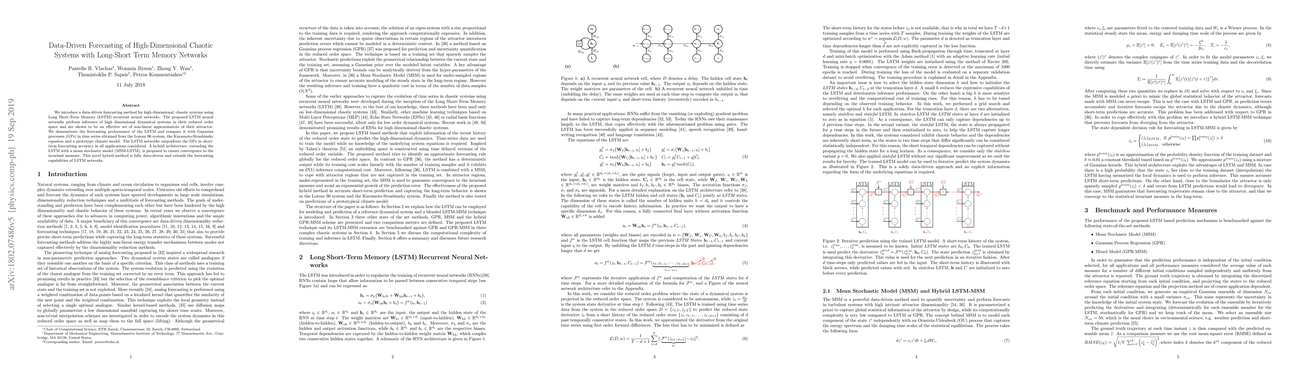 This paper proposes a data-driven forecasting method for high-dimensional chaotic systems using LSTM networks, which outperform Gaussian processes in short-term forecasting accuracy. A hybrid MSM-LSTM architecture is introduced to ensure convergence to the invariant measure, extending the forecasting capabilities of LSTM networks.
