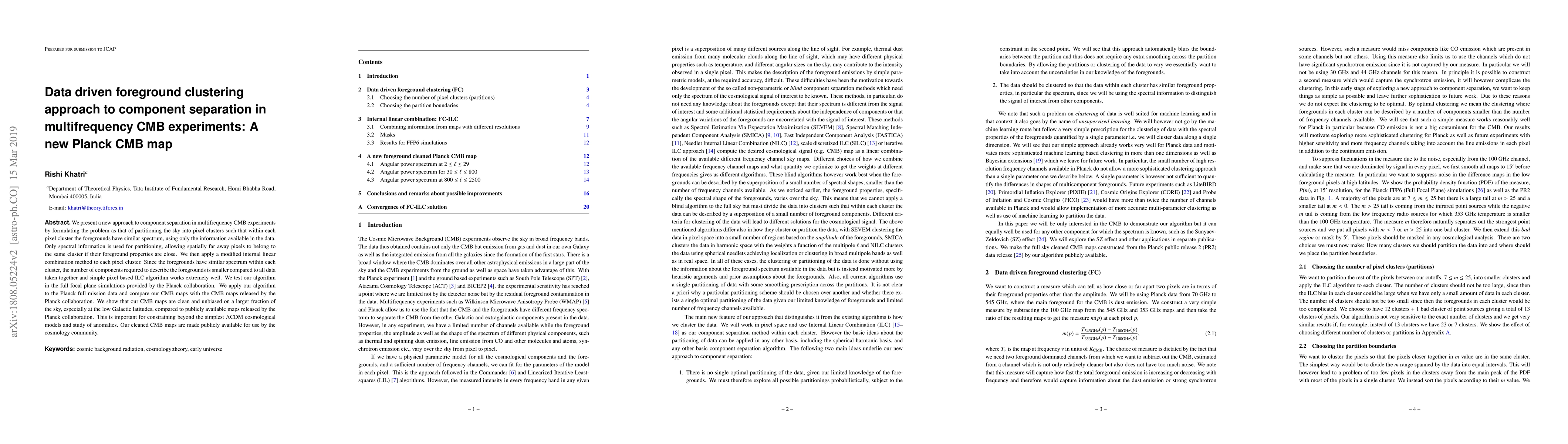 This paper introduces a new data-driven foreground clustering method for component separation in multifrequency Cosmic Microwave Background (CMB) experiments, showing improved CMB maps with reduced contamination, especially at low Galactic latitudes, compared to the Planck collaboration's maps. The method partitions the sky into clusters based on spectral similarity of foregrounds, leading to cleaner CMB maps useful for advanced cosmological studies.