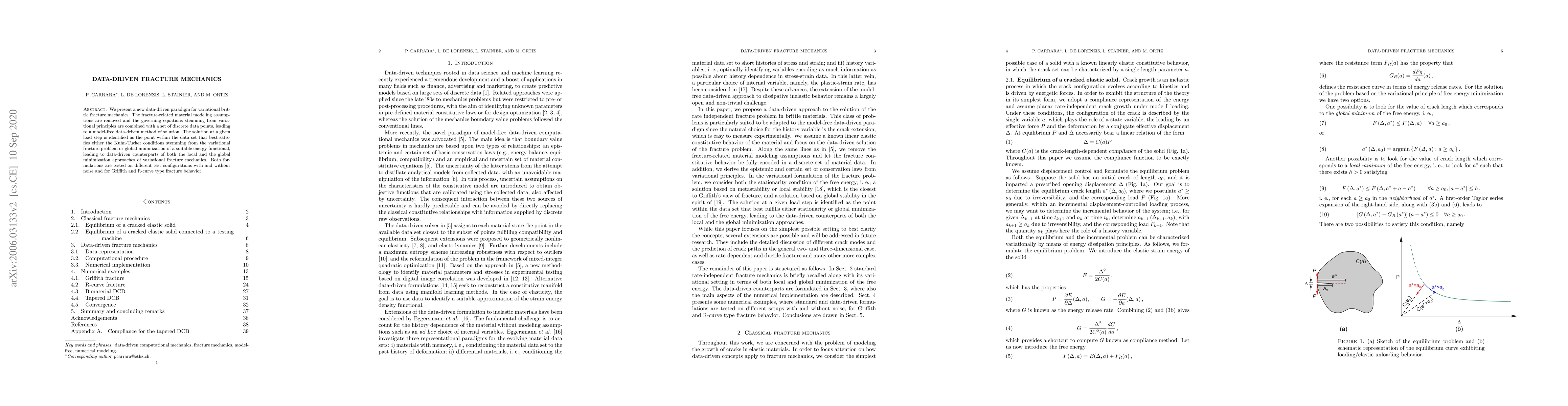 The paper proposes a data-driven method for fracture mechanics that identifies solutions based on either local or global stability principles, fulfilling Kuhn-Tucker conditions for energy release rate, without relying on traditional material modeling assumptions.