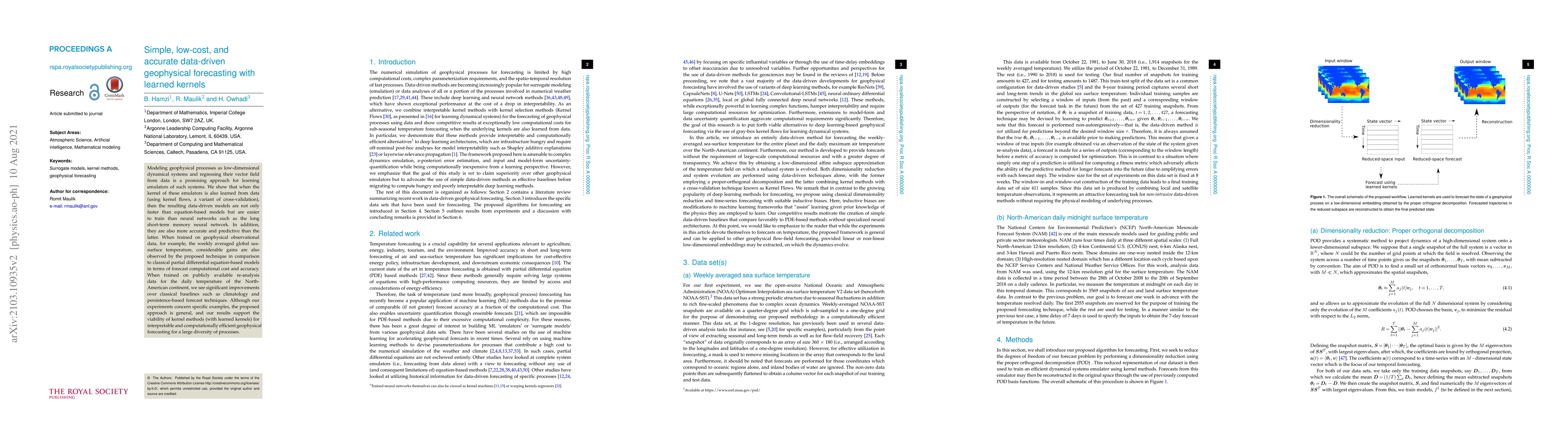 A new data-driven approach using kernel methods shows promise for geophysical forecasting, outperforming traditional models in terms of accuracy and computational efficiency.