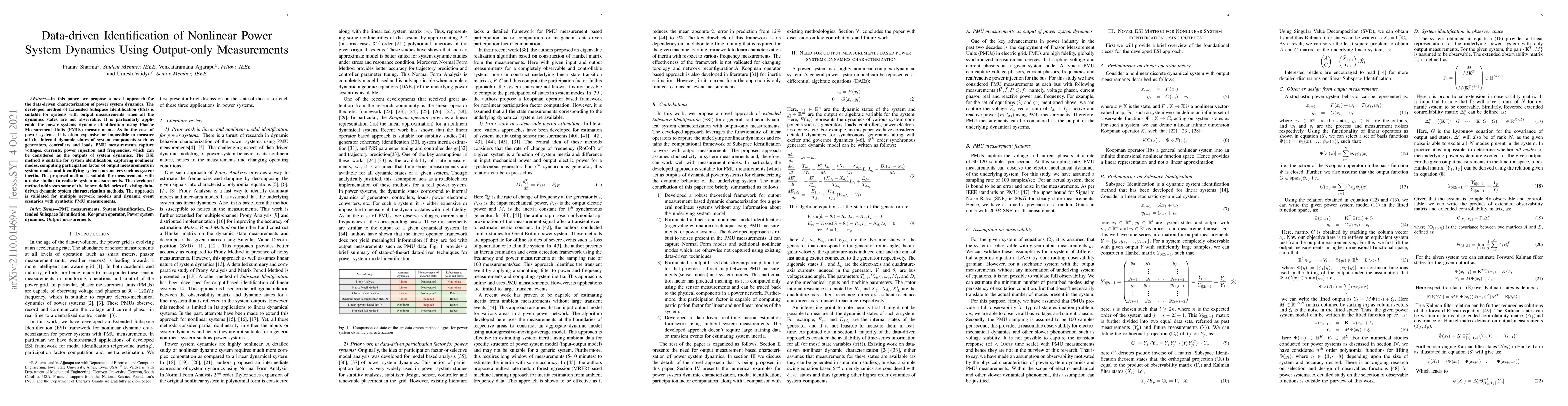 This paper introduces Extended Subspace Identification (ESI) for data-driven characterization of nonlinear power system dynamics using output-only measurements from Phasor Measurement Units (PMUs). The method effectively identifies system parameters and nonlinear modes, even when not all internal states are observable.