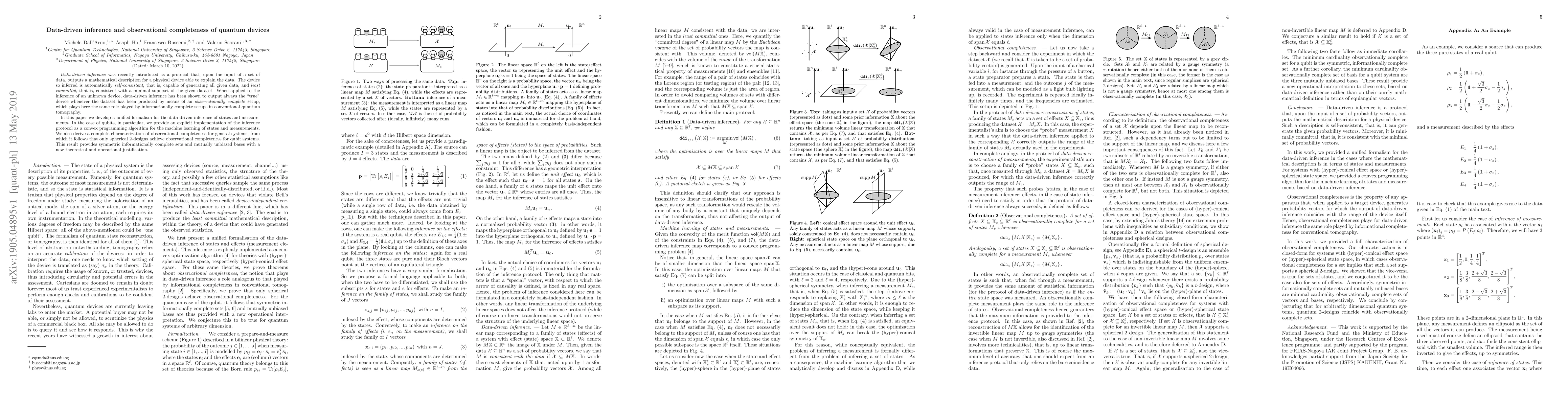 This paper introduces a data-driven inference protocol for automatically deriving self-consistent models of physical devices from data, and applies it to quantum systems. It develops a convex programming approach for inferring qubit states and measurements, and characterizes observational completeness, showing that only spherical 2-designs achieve it for qubits.