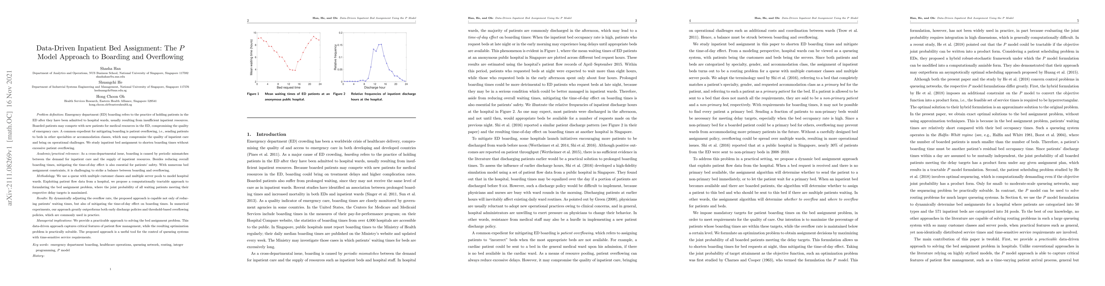 Problem definition: Emergency department (ED) boarding refers to the practice of holding patients in the ED after they have been admitted to hospital wards, usually resulting from insufficient inpatient resources. Boarded patients may compete with new patients for medical resources in the ED, compromising the quality of emergency care. A common expedient for mitigating boarding is patient overflowing, i.e., sending patients to beds in other specialties or accommodation classes, which may compromise the quality of inpatient care and bring on operational challenges. We study inpatient bed assignment to shorten boarding times without excessive patient overflowing. Methodology: We use a queue with multiple customer classes and multiple server pools to model hospital wards. Exploiting patient flow data from a hospital, we propose a computationally tractable approach to formulating the bed assignment problem, where the joint probability of all waiting patients meeting their respective delay targets is maximized. Results: By dynamically adjusting the overflow rate, the proposed approach is capable not only of reducing patients' waiting times, but also of mitigating the time-of-day effect on boarding times. In numerical experiments, our approach greatly outperforms both early discharge policies and threshold-based overflowing policies, which are commonly used in practice. Managerial implications: We provide a practicable approach to solving the bed assignment problem. This data-driven approach captures critical features of patient flow management, while the resulting optimization problem is practically solvable. The proposed approach is a useful tool for the control of queueing systems with time-sensitive service requirements.