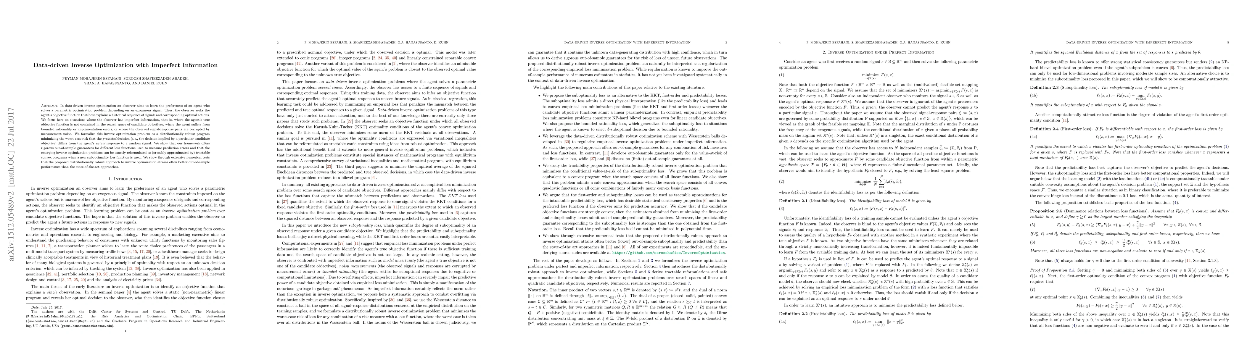 This paper addresses data-driven inverse optimization under imperfect information, proposing a distributionally robust framework to infer an agent's objective function from observed actions. The method reformulates the problem as a tractable convex program, demonstrating superior out-of-sample performance compared to state-of-the-art techniques.