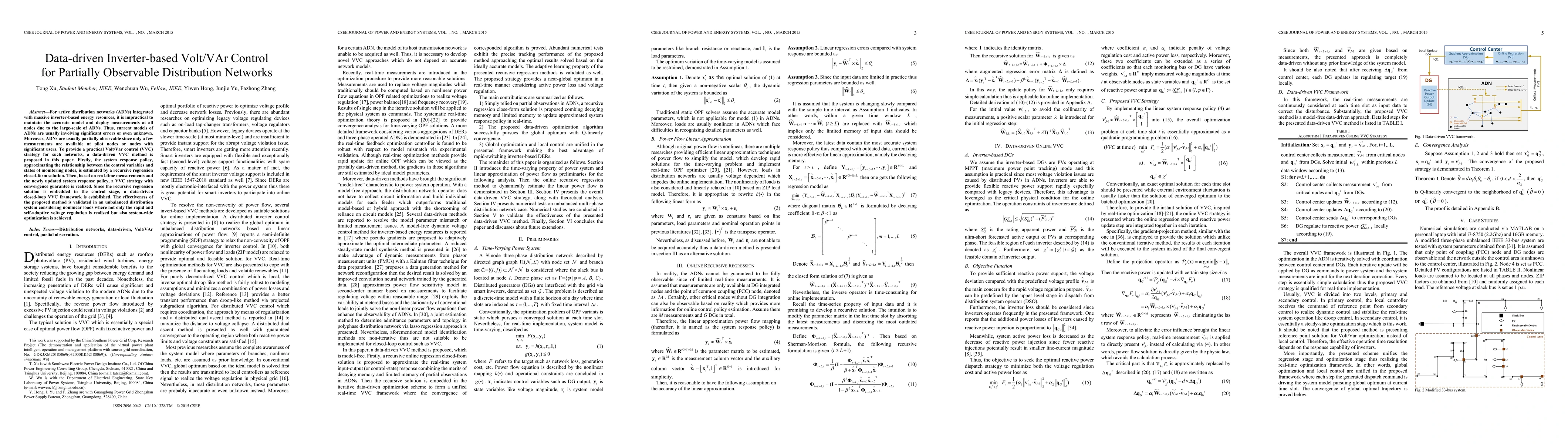 This paper proposes a data-driven Volt/Var control (VVC) strategy for large-scale, partially observable active distribution networks (ADNs) using a recursive regression approach to estimate system response and achieve rapid, self-adaptive voltage regulation and system-wide optimization. The method is validated in an unbalanced distribution network with nonlinear loads.