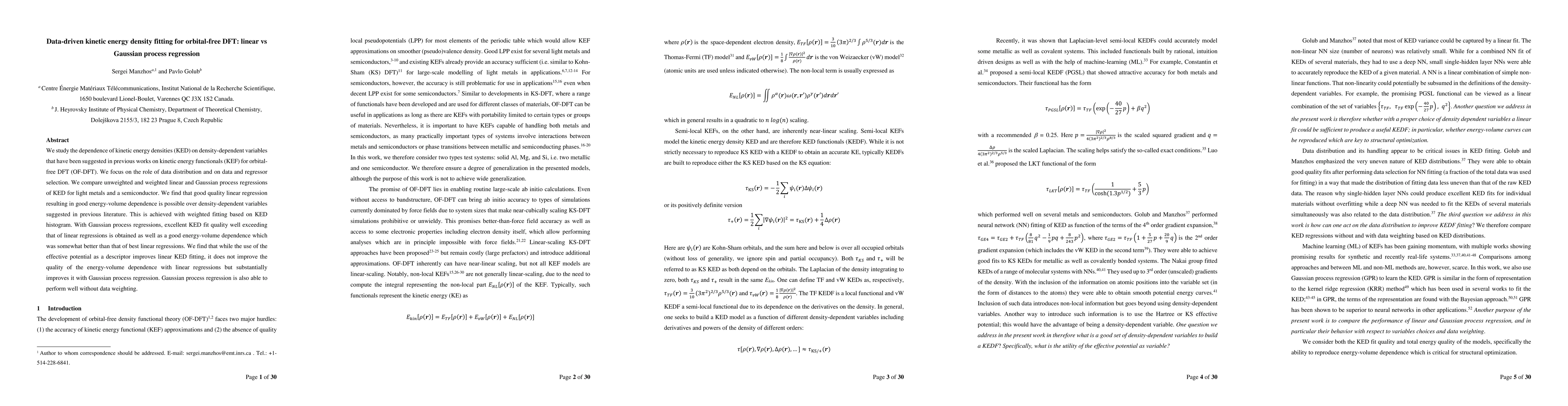 This research paper compares linear and Gaussian process regression methods for fitting kinetic energy densities in orbital-free DFT, finding that both approaches can achieve good energy-volume dependence with data weighting, and that Gaussian process regression often outperforms linear regression.