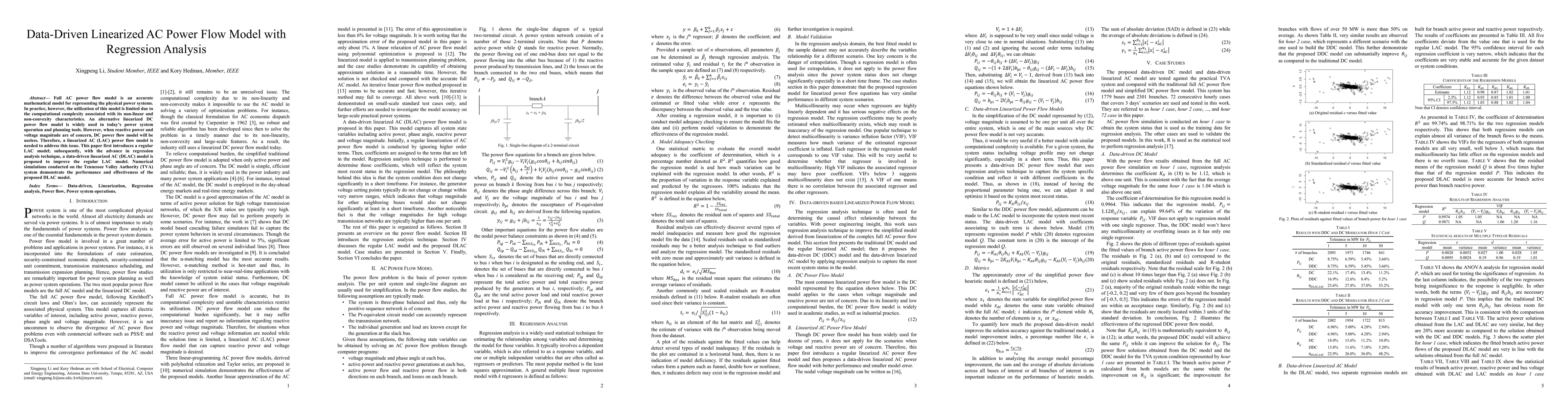 This paper proposes a data driven linearized AC (DLAC) power flow model using regression analysis to enhance the regular linearized AC (LAC) model, addressing the limitations of DC models in handling reactive power and voltage magnitude concerns. Numerical simulations on the TVA system demonstrate the DLAC model's improved performance.
