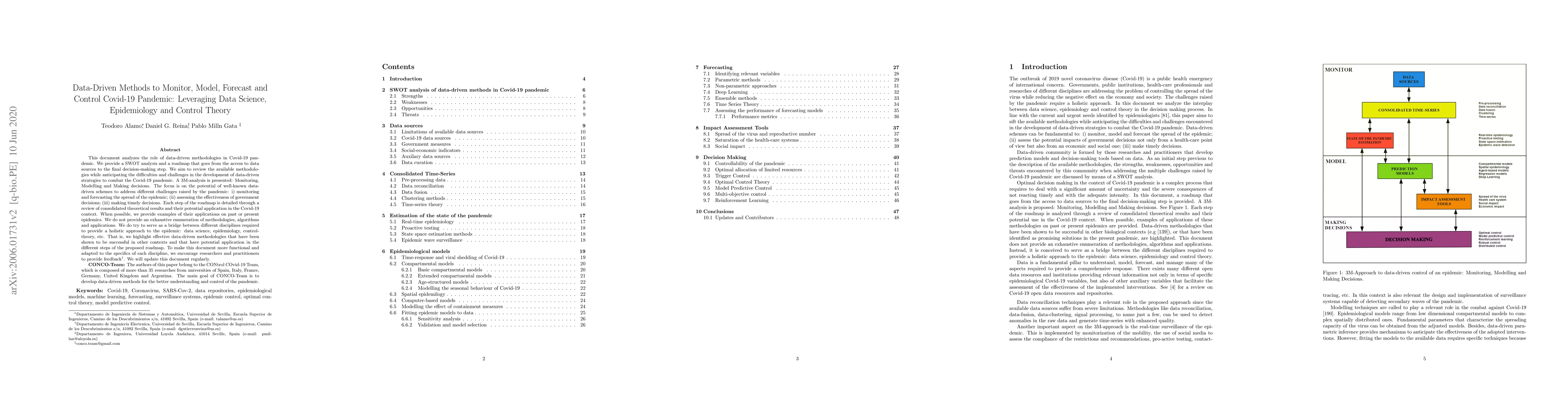 This document analyzes the role of data-driven methodologies in Covid-19 pandemic. We provide a SWOT analysis and a roadmap that goes from the access to data sources to the final decision-making step. We aim to review the available methodologies while anticipating the difficulties and challenges in the development of data-driven strategies to combat the Covid-19 pandemic. A 3M-analysis is presented: Monitoring, Modelling and Making decisions. The focus is on the potential of well-known datadriven schemes to address different challenges raised by the pandemic: i) monitoring and forecasting the spread of the epidemic; (ii) assessing the effectiveness of government decisions; (iii) making timely decisions. Each step of the roadmap is detailed through a review of consolidated theoretical results and their potential application in the Covid-19 context. When possible, we provide examples of their applications on past or present epidemics. We do not provide an exhaustive enumeration of methodologies, algorithms and applications. We do try to serve as a bridge between different disciplines required to provide a holistic approach to the epidemic: data science, epidemiology, controltheory, etc. That is, we highlight effective data-driven methodologies that have been shown to be successful in other contexts and that have potential application in the different steps of the proposed roadmap. To make this document more functional and adapted to the specifics of each discipline, we encourage researchers and practitioners to provide feedback. We will update this document regularly.