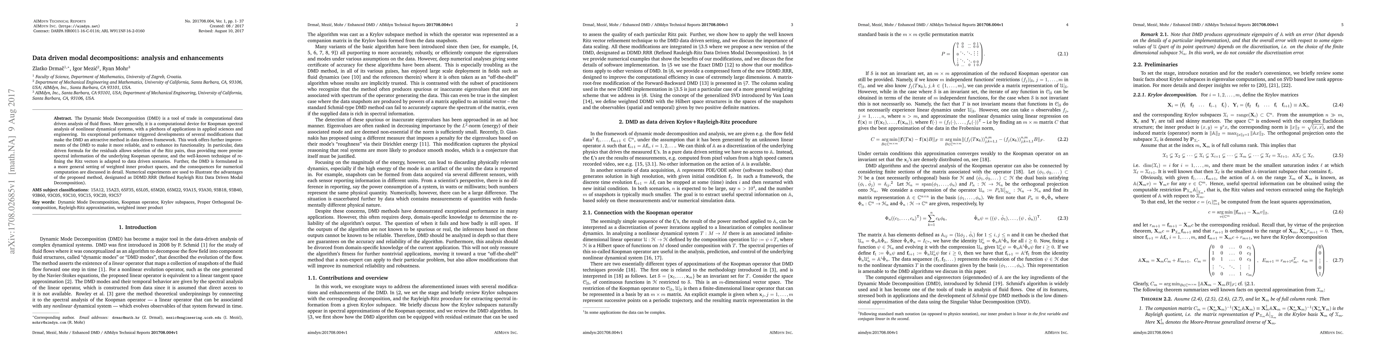 The Dynamic Mode Decomposition (DMD) is a tool of trade in computational data driven analysis of fluid flows. More generally, it is a computational device for Koopman spectral analysis of nonlinear dynamical systems, with a plethora of applications in applied sciences and engineering. Its exceptional performance triggered developments of several modifications that make the DMD an attractive method in data driven framework. This work offers further improvements of the DMD to make it more reliable, and to enhance its functionality. In particular, data driven formula for the residuals allows selection of the Ritz pairs, thus providing more precise spectral information of the underlying Koopman operator, and the well-known technique of refining the Ritz vectors is adapted to data driven scenarios. Further, the DMD is formulated in a more general setting of weighted inner product spaces, and the consequences for numerical computation are discussed in detail. Numerical experiments are used to illustrate the advantages of the proposed method, designated as DDMD_RRR (Refined Rayleigh Ritz Data Driven Modal Decomposition).