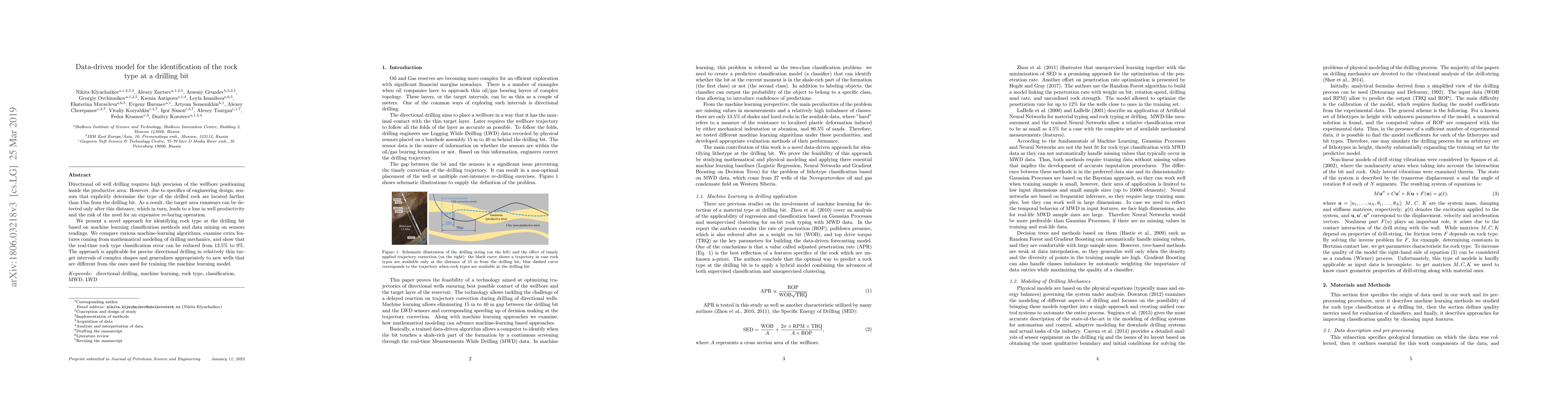 This paper introduces a machine learning model to identify rock types at the drilling bit using sensor data and data mining, improving real-time classification accuracy from 13.5% to 9%. The method enhances precision in directional oil well drilling, reducing the risk of productivity loss and costly re-boring operations.