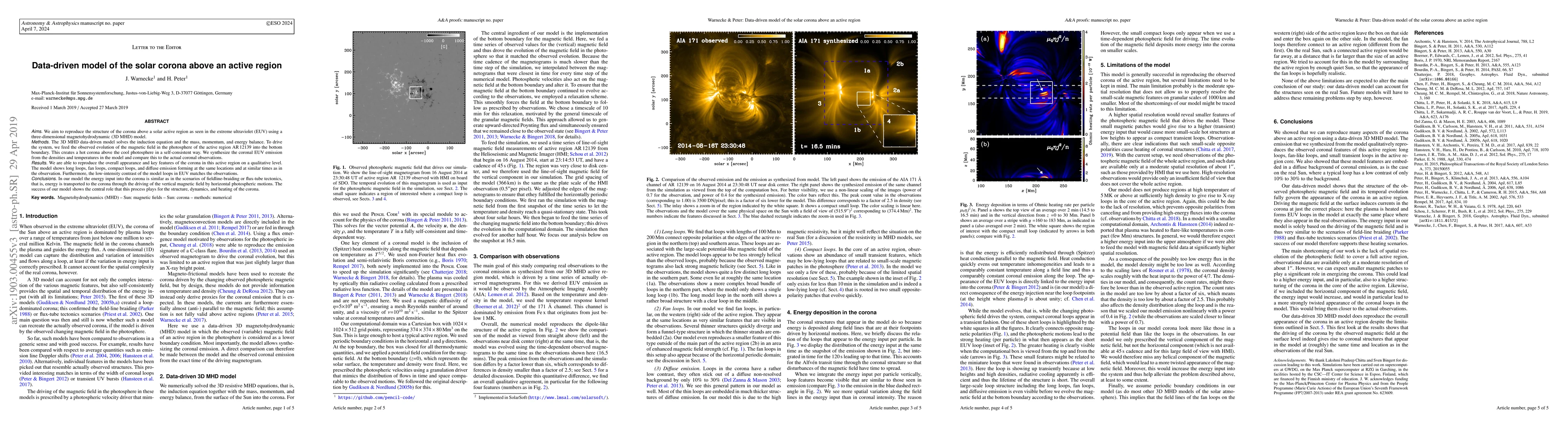 This paper presents a 3D MHD model to reproduce the solar corona above an active region using observed magnetic field evolution as input. The model successfully replicates key coronal features and energy transport mechanisms, highlighting the importance of photospheric motions in shaping the corona.