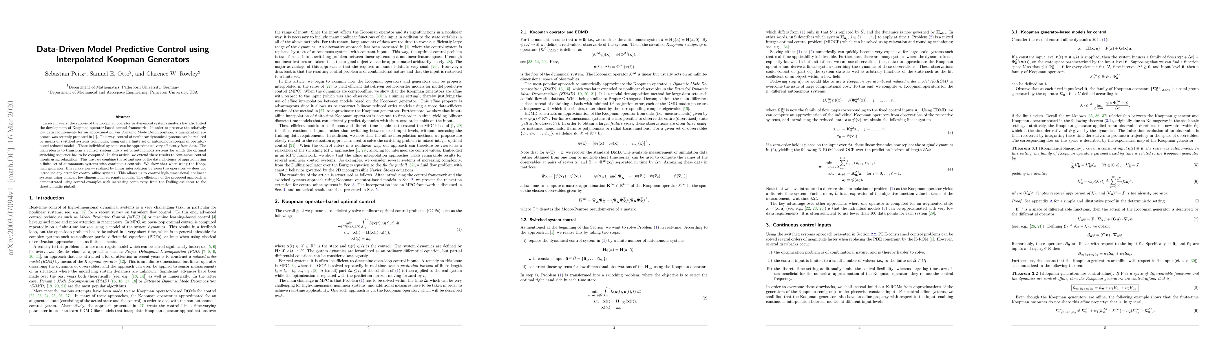 This paper proposes a data-driven Model Predictive Control (MPC) framework using interpolated Koopman generators for nonlinear dynamical systems. The approach efficiently combines the low data requirements of Koopman operator-based reduced models with continuous control inputs, demonstrating no error in control affine systems through linear interpolation between operators.