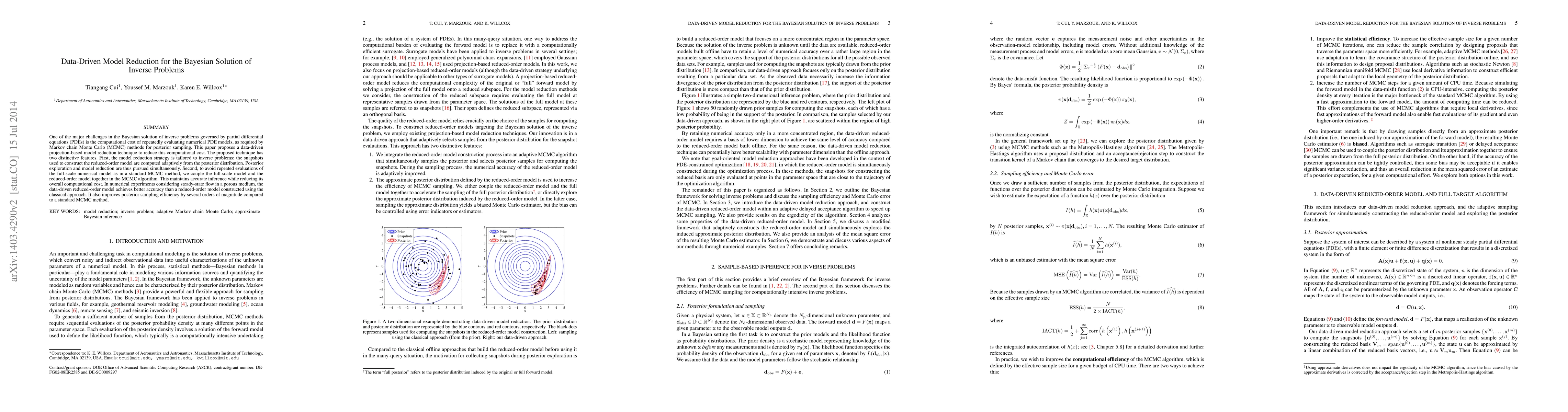 This paper introduces a data-driven model reduction technique for Bayesian inverse problems governed by PDEs, achieving simultaneous posterior exploration and model reduction. The method couples the full-scale model with a reduced-order model in MCMC, significantly improving computational efficiency and accuracy over traditional methods.