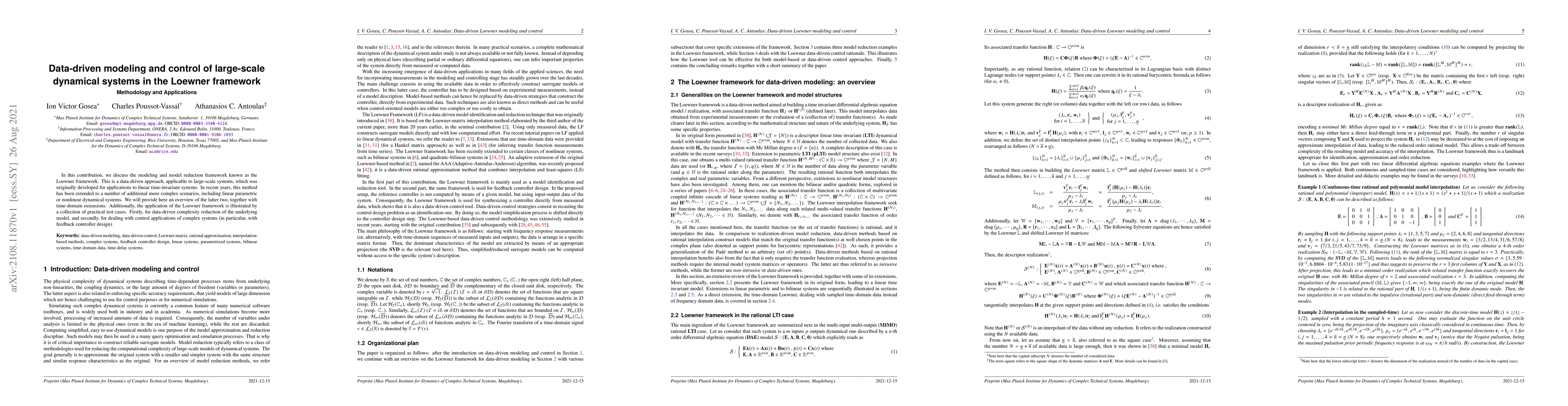 This paper explores the Loewner framework for data-driven modeling and control of large-scale dynamical systems, extending its application from linear time-invariant to linear parametric and nonlinear systems. It also demonstrates practical applications in model reduction and feedback controller design.