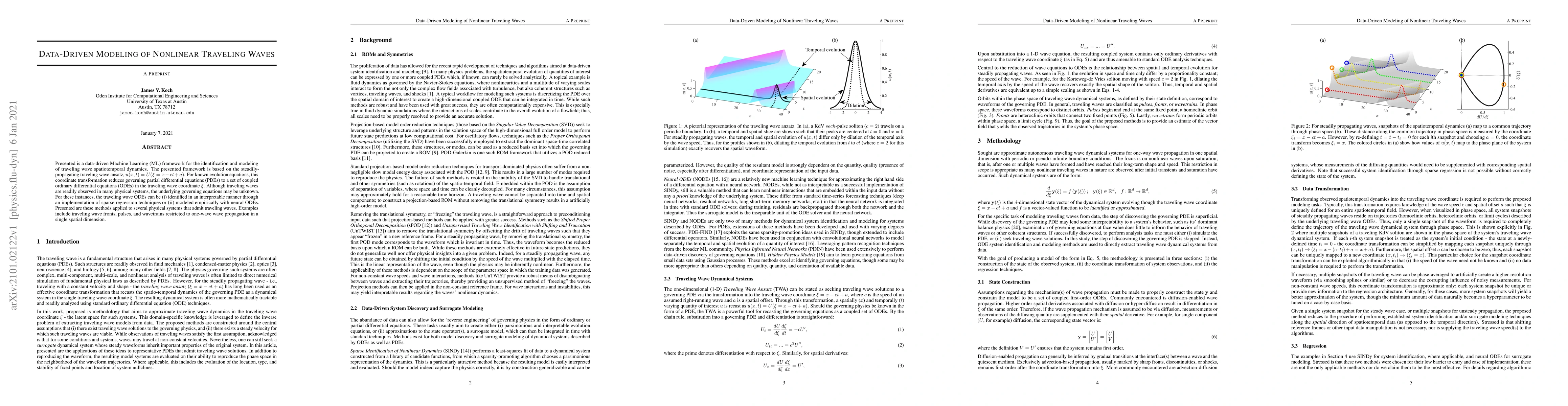 Researchers developed a data-driven machine learning framework to identify and model nonlinear traveling waves in physical systems. The framework uses a coordinate transformation to reduce complex partial differential equations to ordinary differential equations, enabling the modeling of unknown governing equations.
